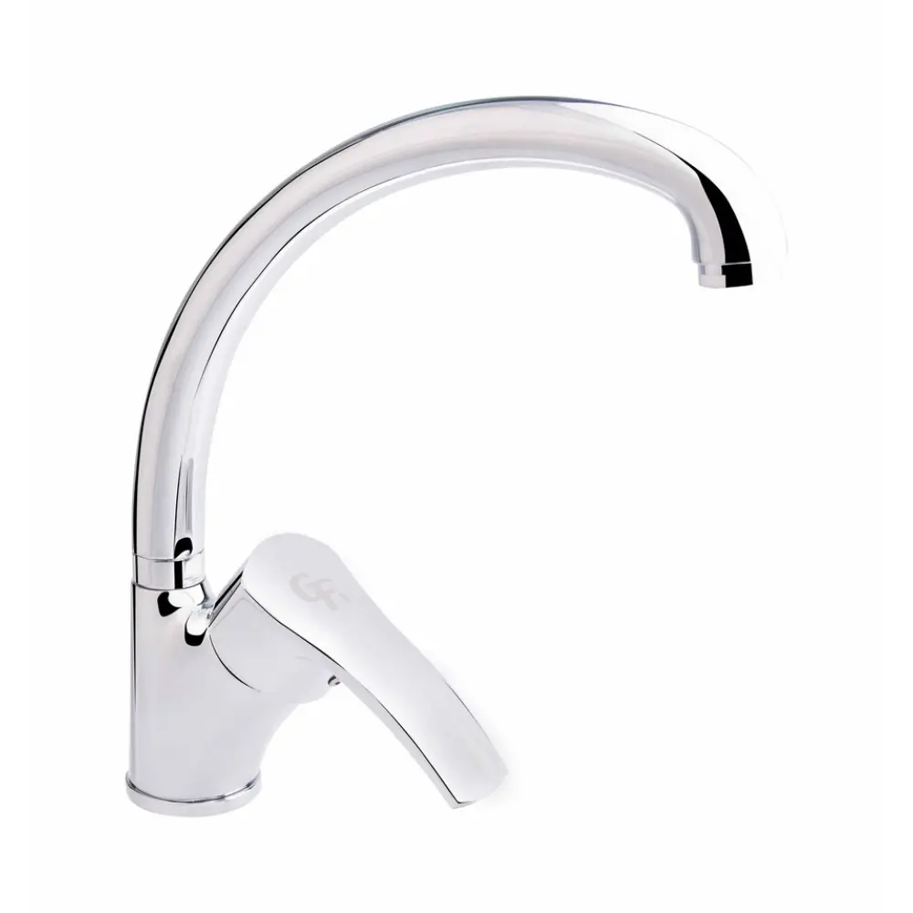Змішувач для кухні GF (CRM)S-03-012F виготовлений з силуміну. Завдяки хромованому покриттю має оригінальний зовнішній вигляд. Виконаний в класичному стилі зі зручною ручкою для перемикання холодної та гарячої води. Такий змішувач не тільки практичний, але й ідеально доповнить інтер‘єр кухні.