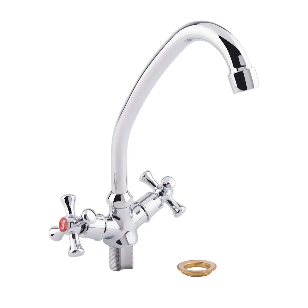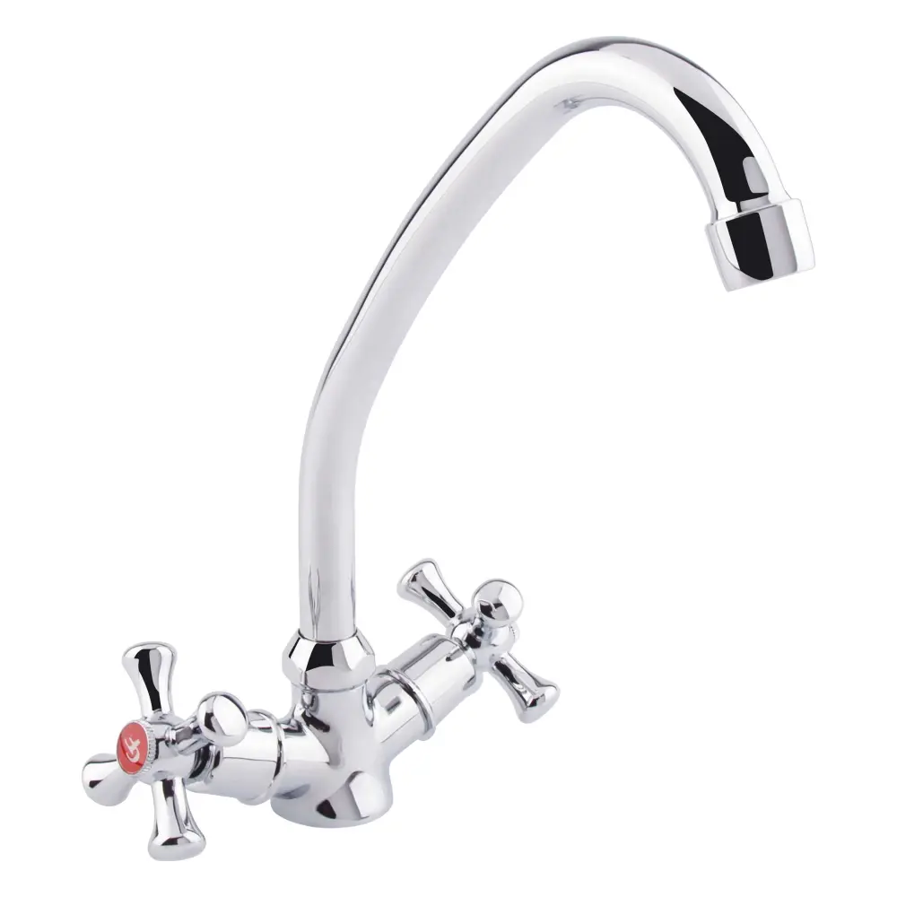 Змішувач для кухні GF (CRM)S-21-271AF виготовлений з силуміну. Завдяки глянсовому хромованому покриттю має оригінальний зовнішній вигляд. Виконаний в класичному стилі, з вентильними ручками для перемикання потоку холодної та гарячої води.