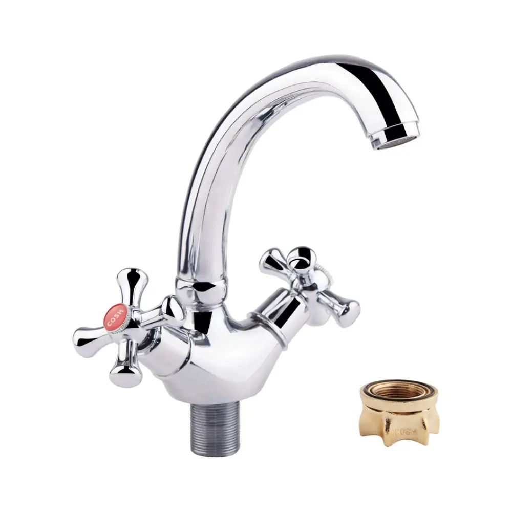 Змішувач для кухні GF (CRM)S-21-272F виготовлений з силуміну. Завдяки глянсовому хромованому покриттю має оригінальний зовнішній вигляд. Виконаний в класичному стилі, з вентильними ручками для перемикання потоку холодної та гарячої води.