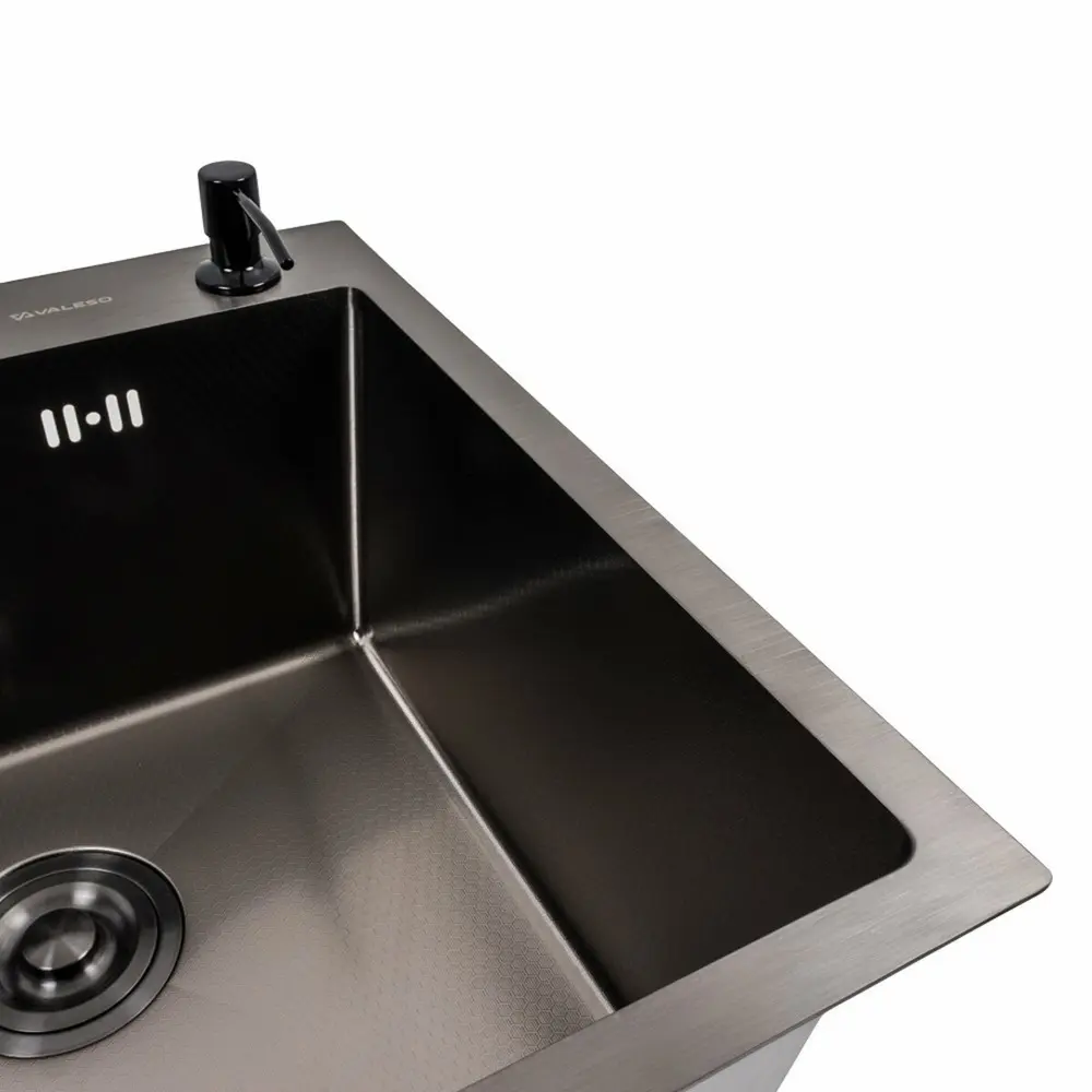 Мийка для кухні VALESO виготовлена з нержавіючої сталі SUS 201 з покриттям DECOR PVD , що гарантує її довговічність. Покриття мийки захищає її від подряпин потемніння та нальоту. Така кухонна мийка не боїться високих температур та впливу засобів побутової хімії.