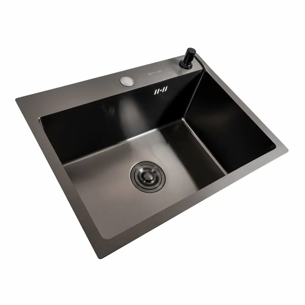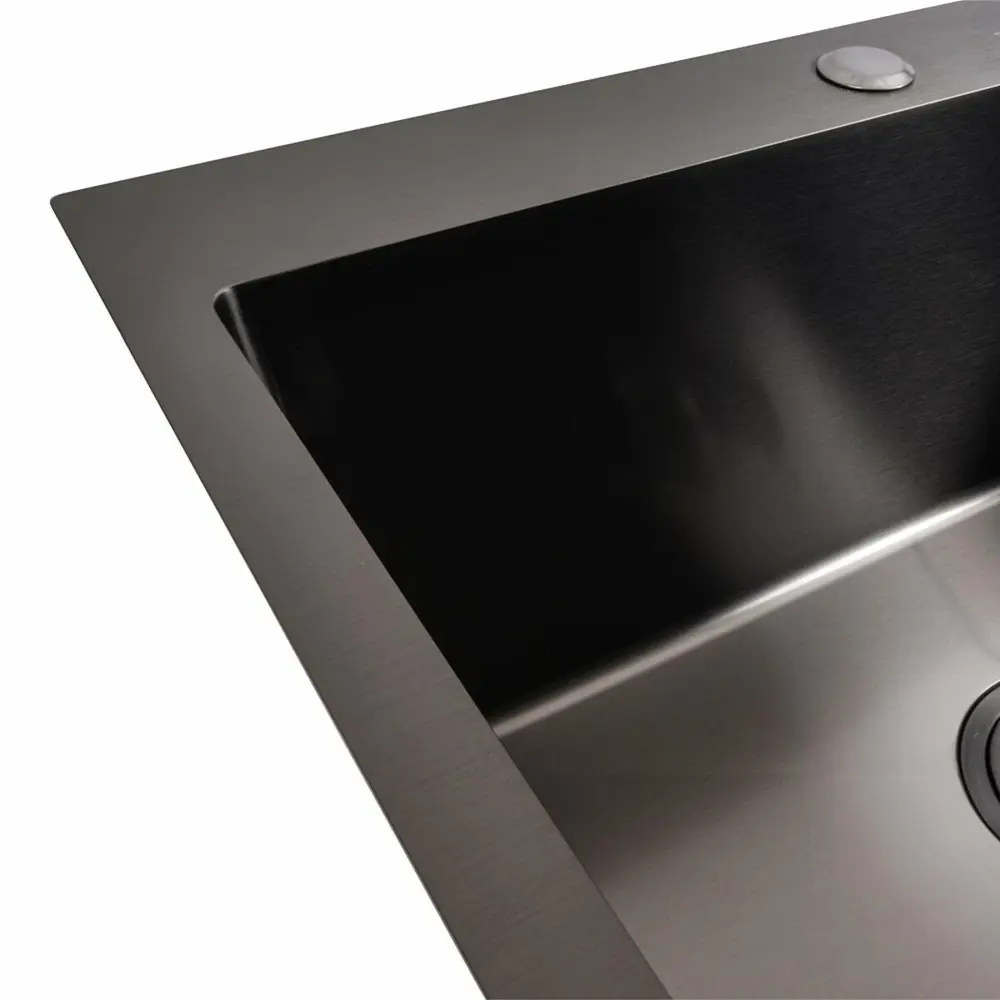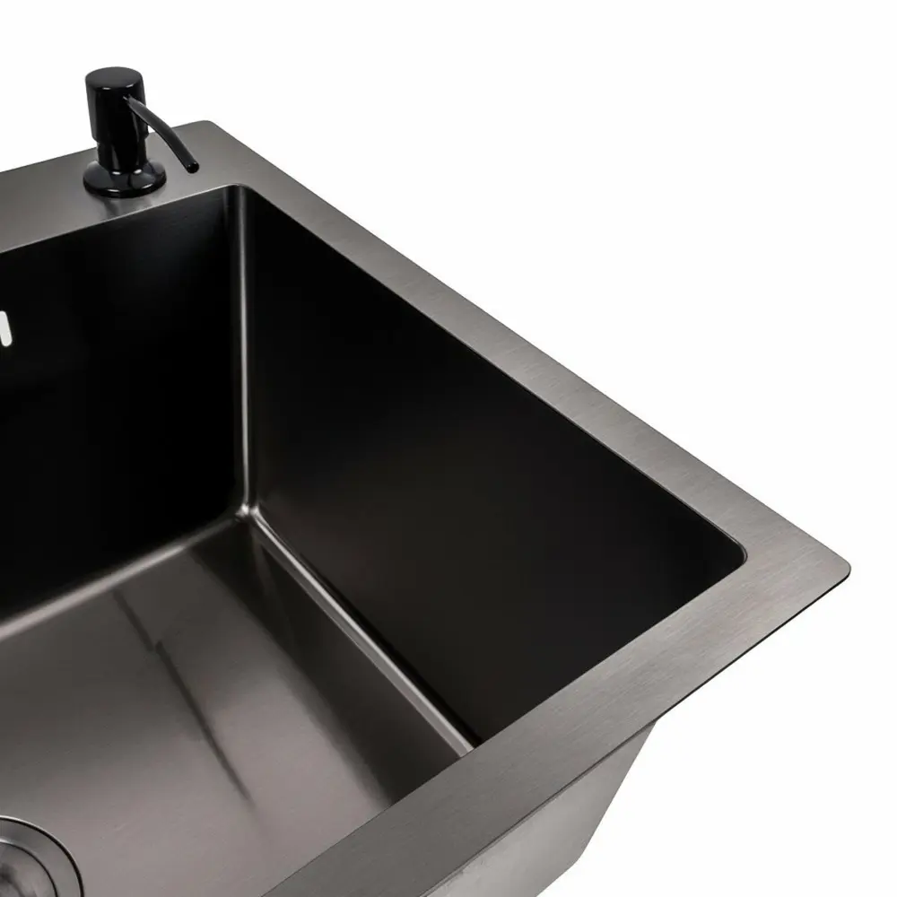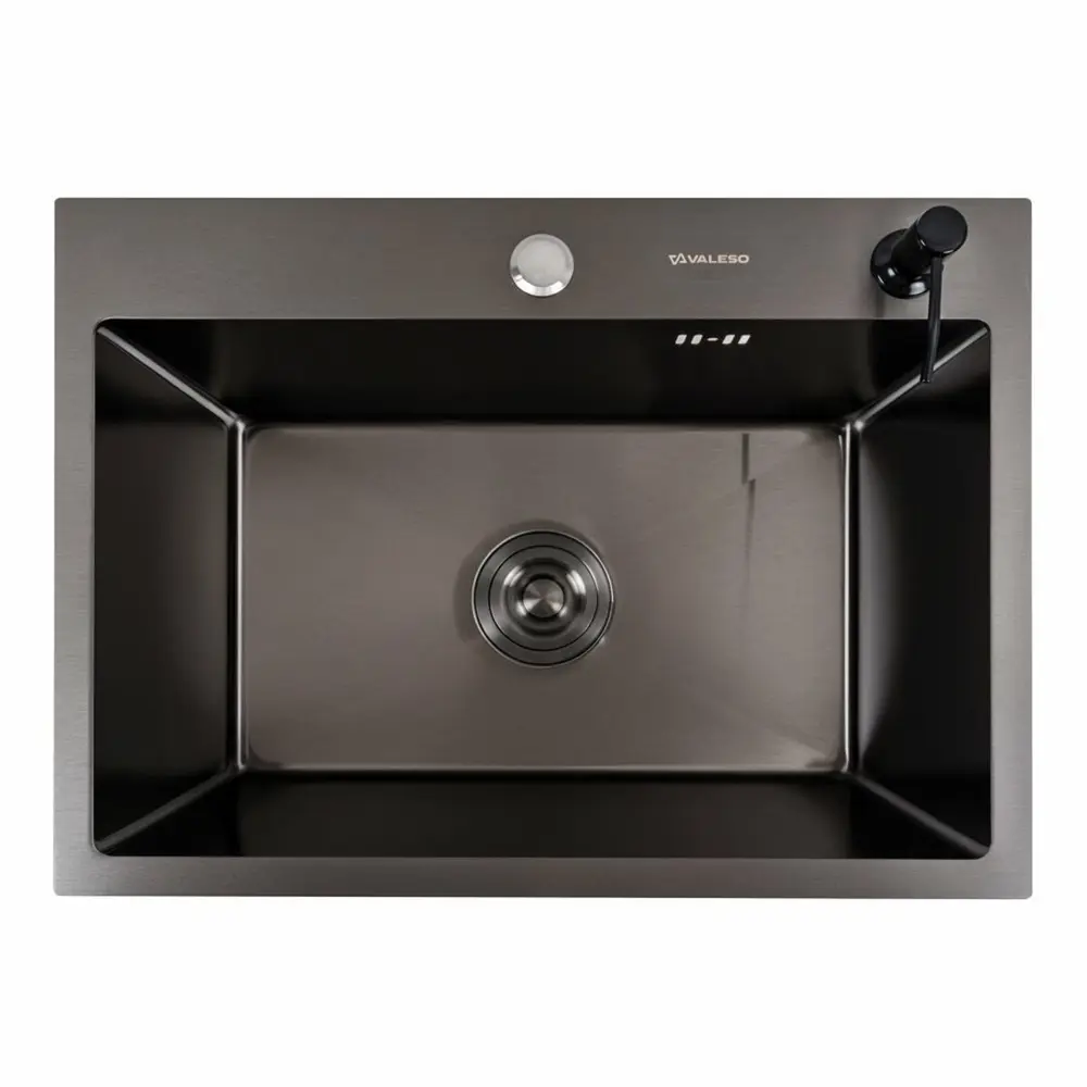 Кухонна мийка 58*43 PVD чорна VALESO Handmade (сифон круглий, 3,0/0,8) це відмінне стильне рішення для кухні невеликих та середніх розмірів. Лаконічний дизайн прямокутної форми добре пасує різним інтер’єрам кухні.