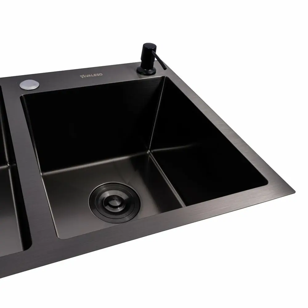 Мийка для кухні VALESO виготовлена з нержавіючої сталі SUS 201 з покриттям PVD, що гарантує її довговічність. Покриття мийки захищає її від подряпин потемніння та нальоту. Така кухонна мийка не боїться високих температур та впливу засобів побутової хімії.