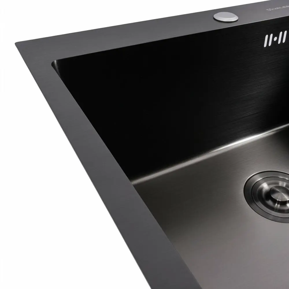 Кухонна мийка 60*50 PVD чорна VALESO Handmade ECN (2,0/0,5) це відмінне стильне рішення для кухні невеликих та середніх розмірів. Лаконічний дизайн квадратної форми добре пасує різним інтер’єрам кухні.
