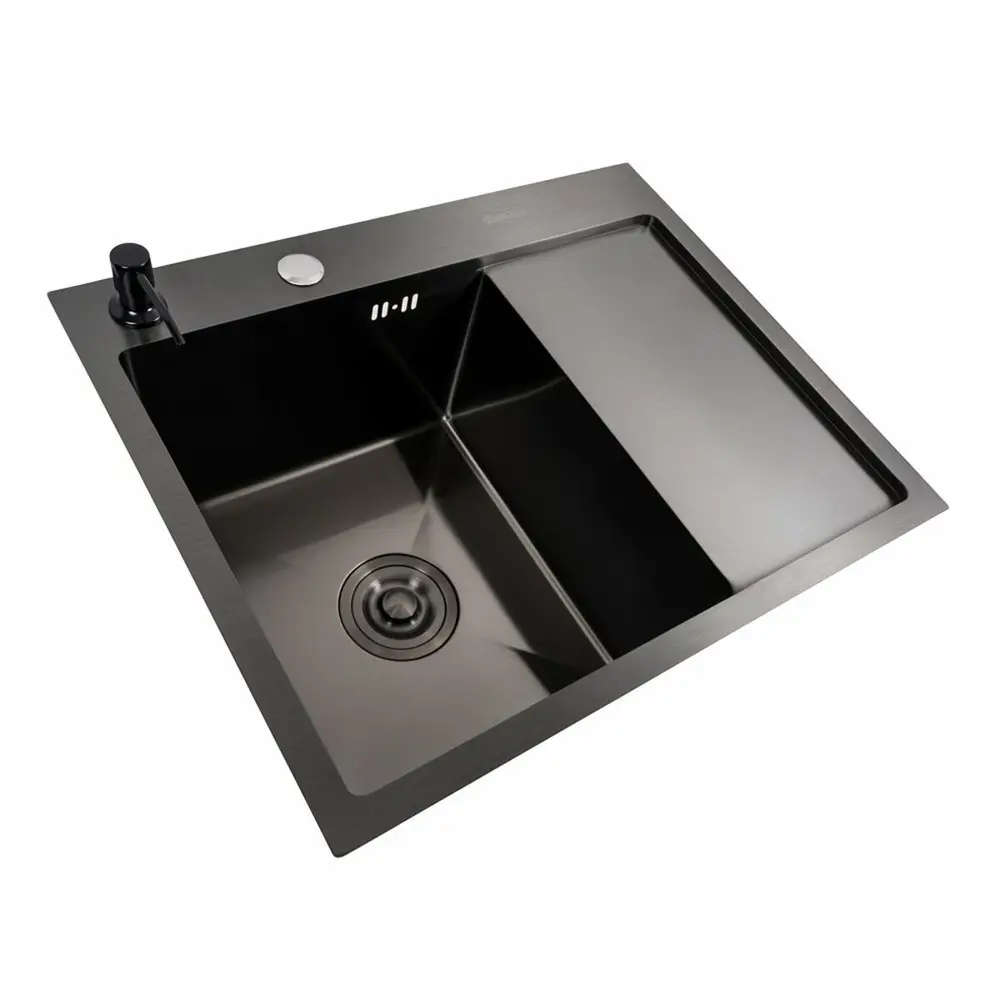 Ця кухонна мийка стане не лише функціональним, але й стильним елементом вашого інтер’єру. Елегантне чорне PVD покриття додає розкоші, а високоякісна нержавіюча сталь забезпечує довговічність та стійкість до подряпин.