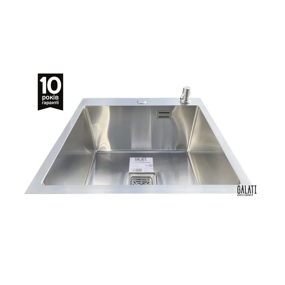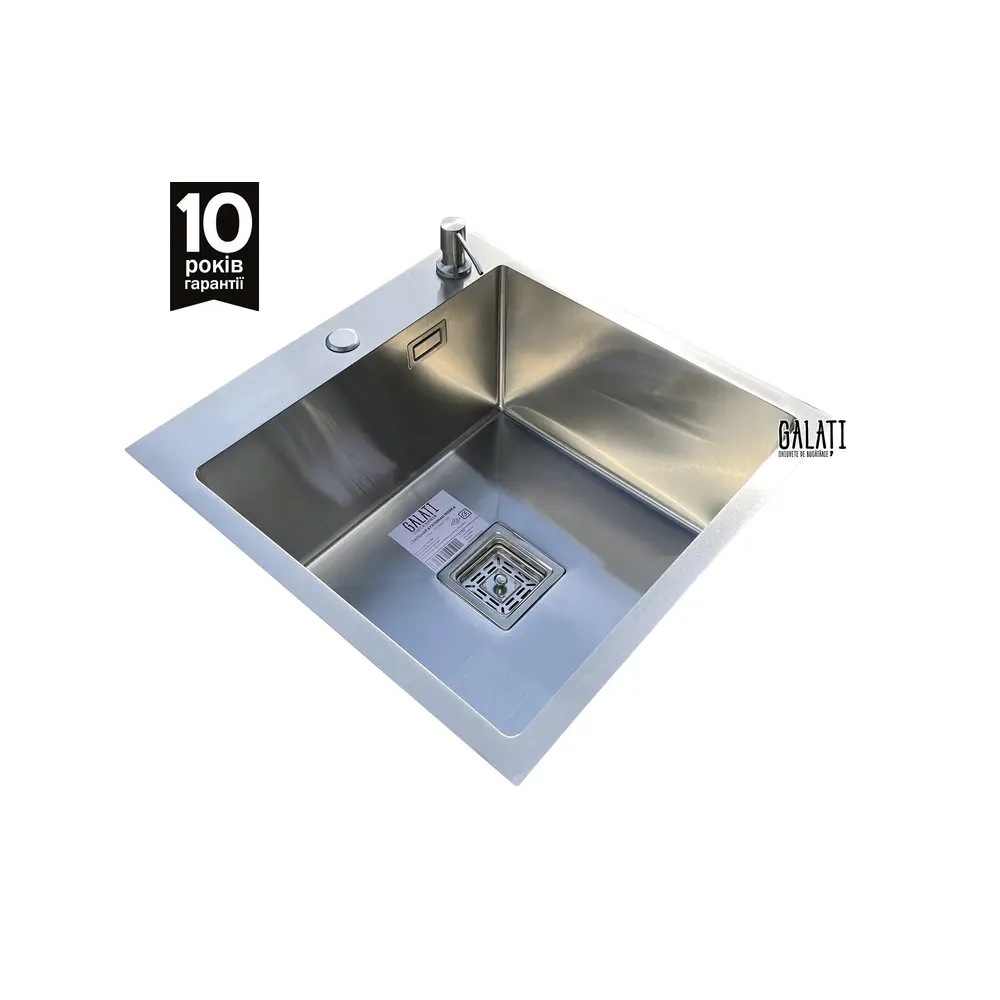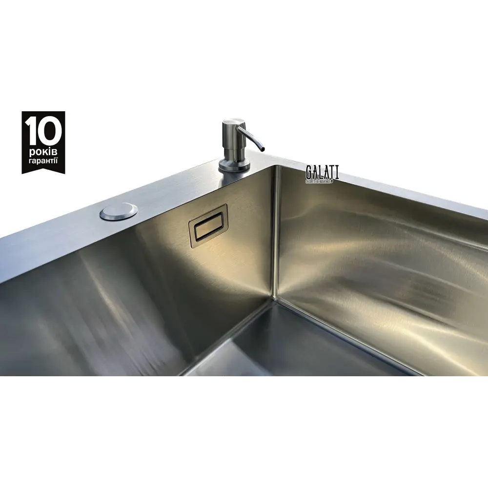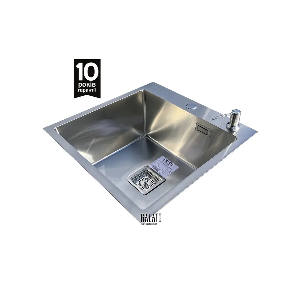 Комплектація: кухонна мийка, сифон, армованний гофро-шланг, корзина з нержавіючої сталі та дозатор для рідкого миючого засобу