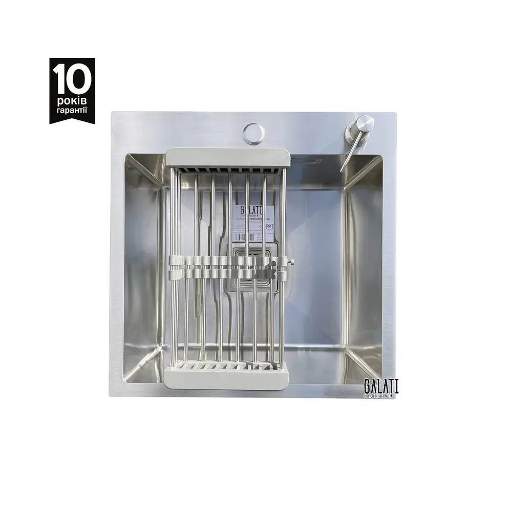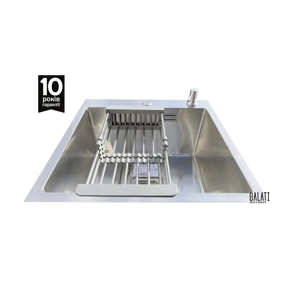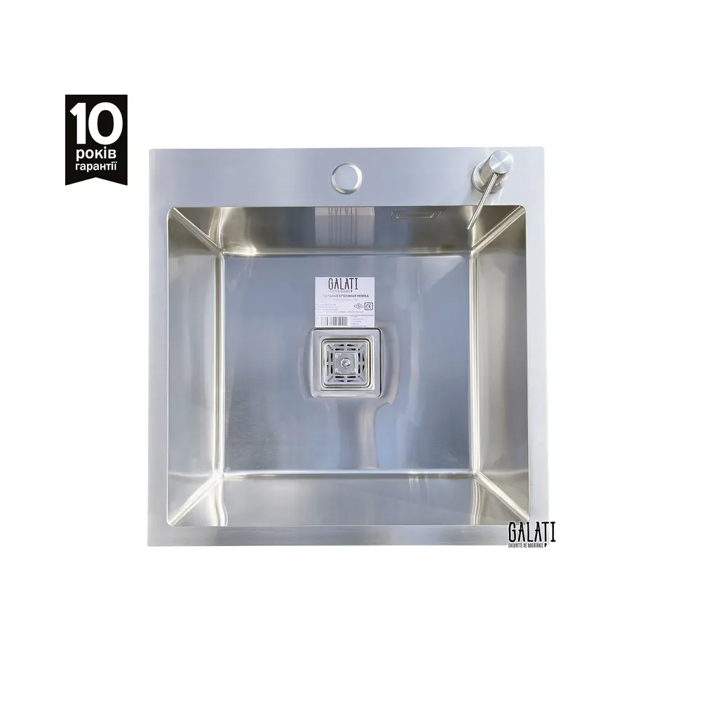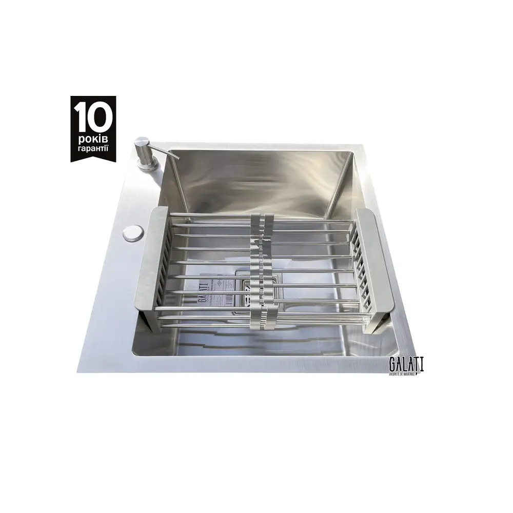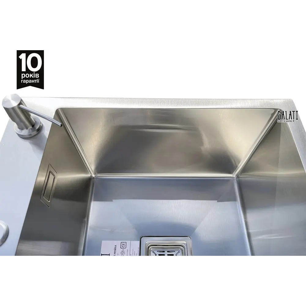 Комплектація: кухонна мийка, сифон, армованний гофро-шланг, корзина з нержавіючої сталі та дозатор для рідкого миючого засобу