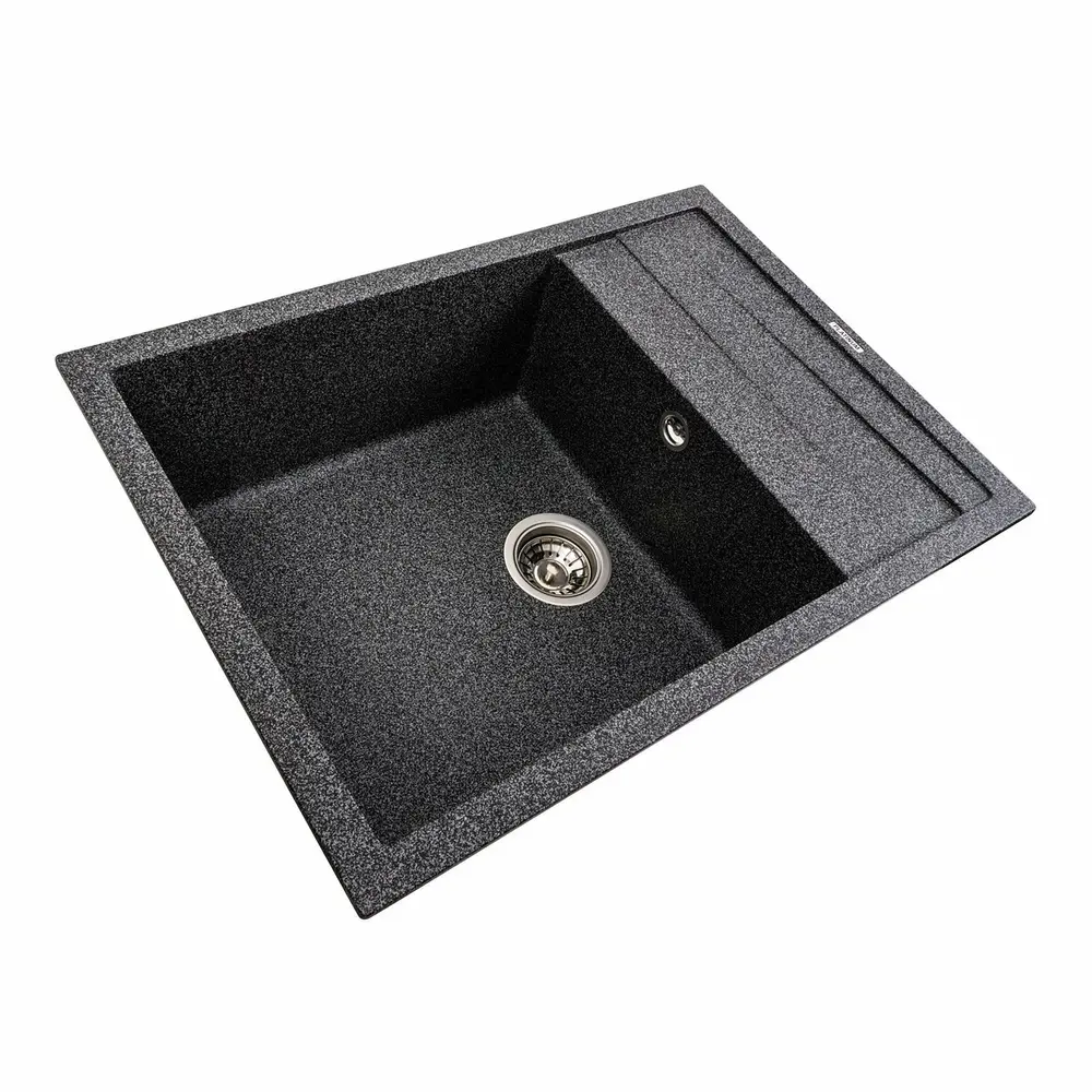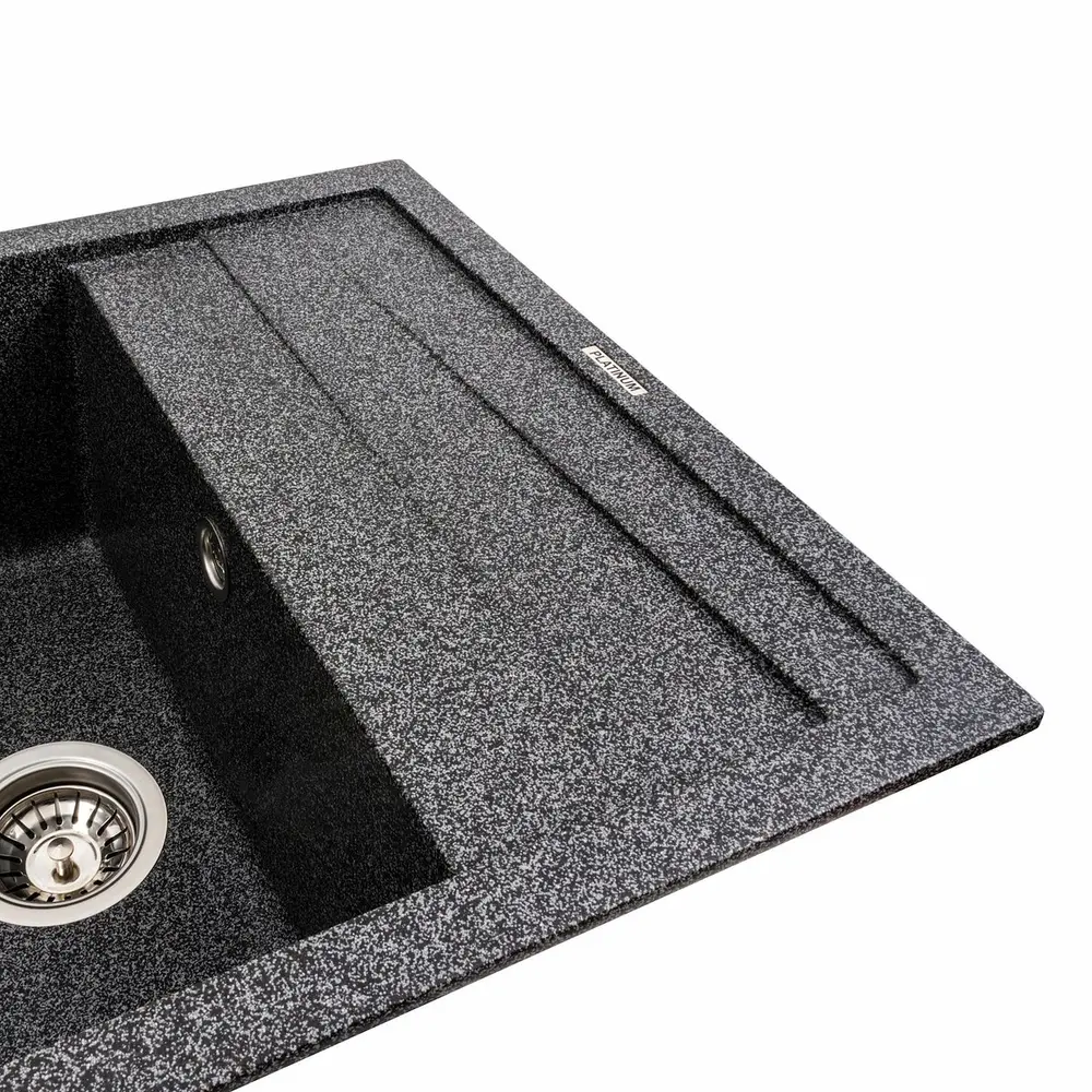 Гранітна мийка для кухні 7050 CASCADA кольору Графіт українського бренду Platinum - це стильна, врізна, прямокутна мийка, яка своїм виглядом чудово доповнить дизайн вашої кухні. Мийка на 80% складається з кварцу та на 20% з надзвичайно твердої акрилової смоли, завдяки чому невибаглива у догляді, а також має великий запас міцності.