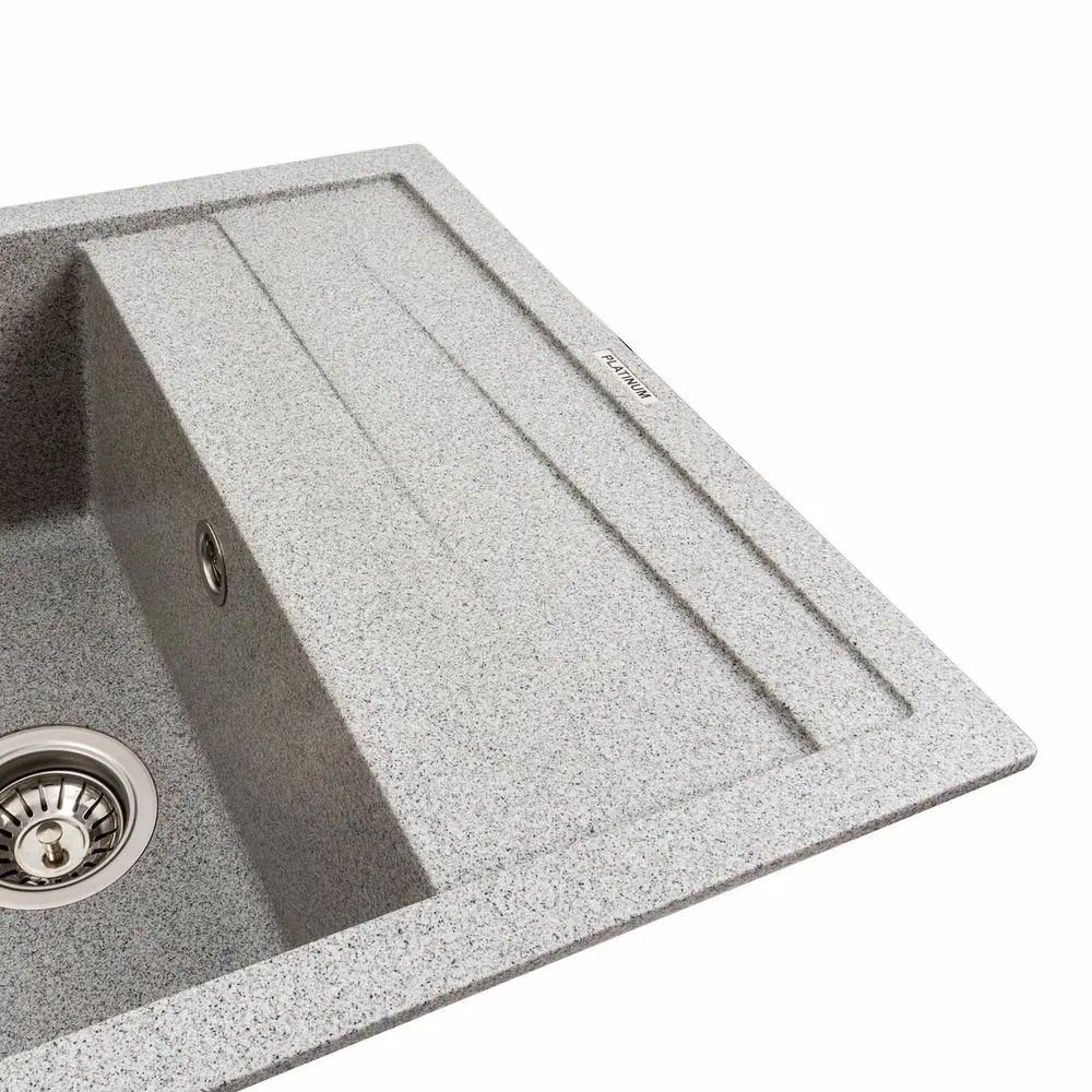 Гранітна мийка для кухні 7050 CASCADA кольору Сірий українського бренду Platinum - це стильна, врізна, прямокутна мийка, яка своїм виглядом чудово доповнить дизайн вашої кухні. Мийка на 80% складається з кварцу та на 20% з надзвичайно твердої акрилової смоли, завдяки чому невибаглива у догляді, а також має великий запас міцності.