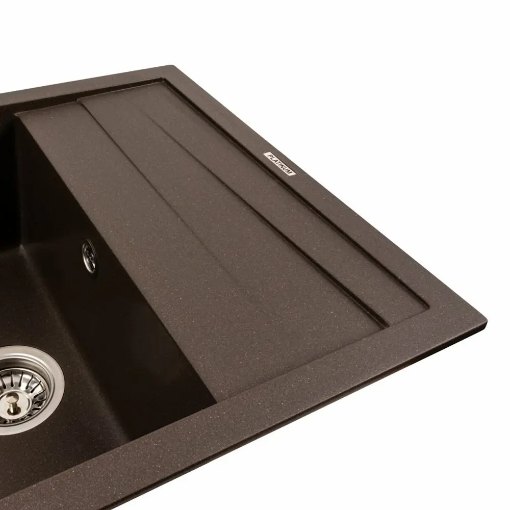 Гранітна мийка для кухні 7050 CASCADA кольору Темна скеля українського бренду Platinum - це стильна, врізна, прямокутна мийка, яка своїм виглядом чудово доповнить дизайн вашої кухні. Мийка на 80% складається з кварцу та на 20% з надзвичайно твердої акрилової смоли, завдяки чому невибаглива у догляді, а також має великий запас міцності.