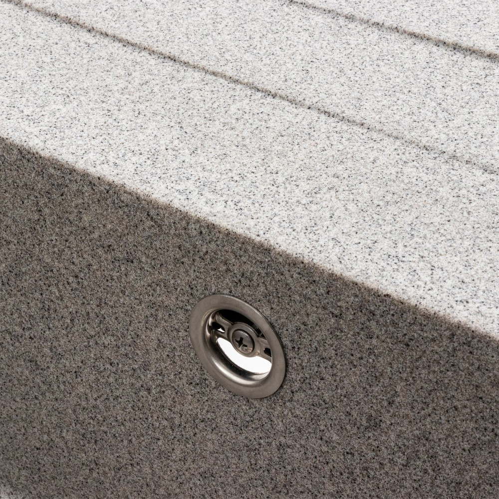 Гранітна мийка для кухні 7050 CASCADA кольору Сірий українського бренду VALESO - це стильна, врізна, прямокутна мийка, яка своїм виглядом чудово доповнить дизайн вашої кухні. Мийка на 80% складається з кварцу та на 20% з надзвичайно твердої акрилової смоли, завдяки чому невибаглива у догляді, а також має великий запас міцності.