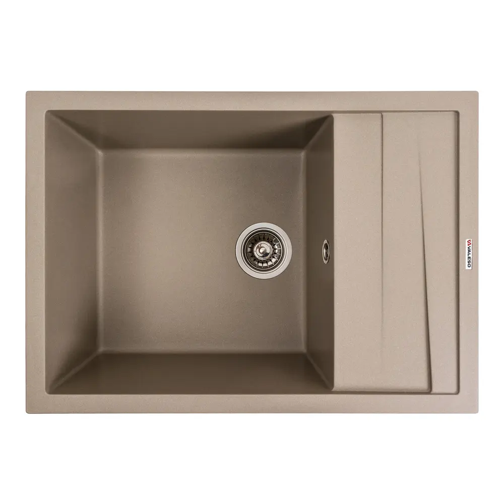 Гранітна мийка для кухні 7050 CASCADA кольору Титан українського бренду VALESO - це стильна, врізна, прямокутна мийка, яка своїм виглядом чудово доповнить дизайн вашої кухні. Мийка на 80% складається з кварцу та на 20% з надзвичайно твердої акрилової смоли, завдяки чому невибаглива у догляді, а також має великий запас міцності.