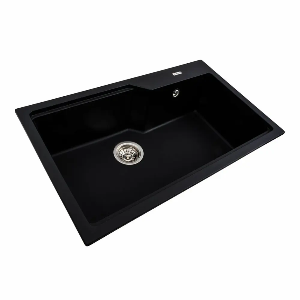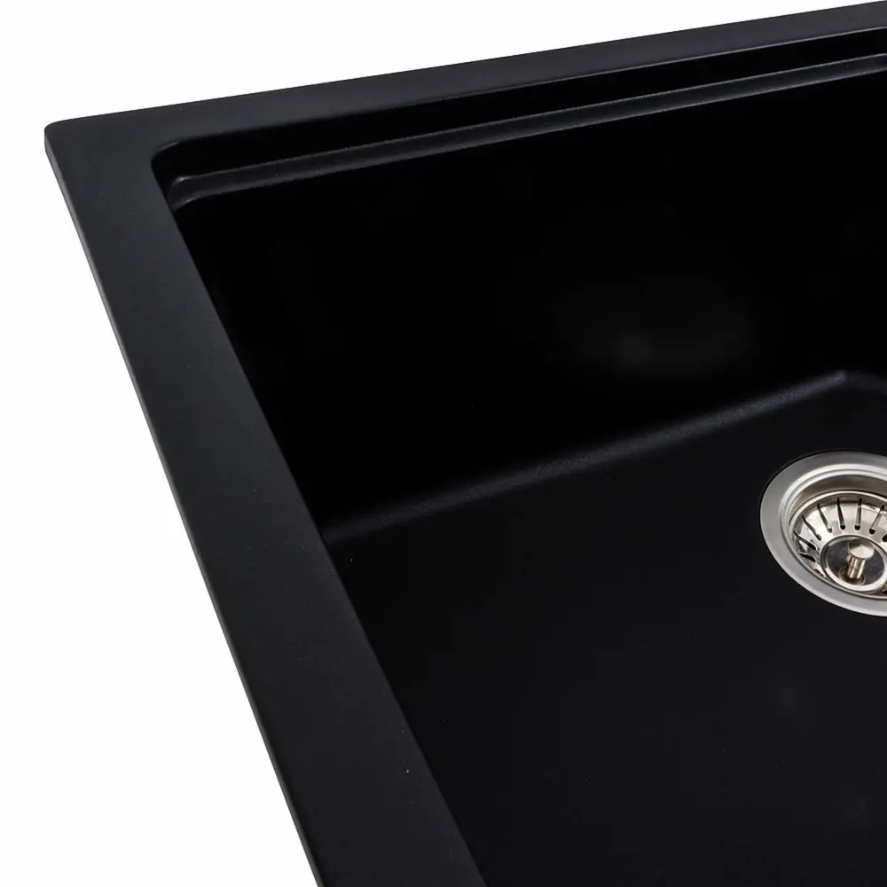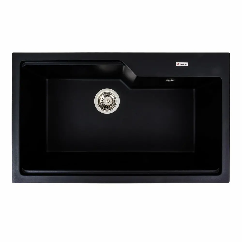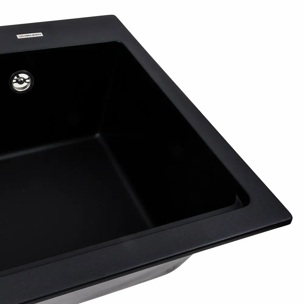 Гранітна мийка для кухні 7545 NIKA Чорна українського бренду VALESO - це стильна, врізна, прямокутна мийка, яка своїм виглядом чудово доповнить дизайн вашої кухні. Мийка на 80% складається з кварцу та на 20% з надзвичайно твердої акрилової смоли, завдяки чому невибаглива у догляді, а також має великий запас міцності.