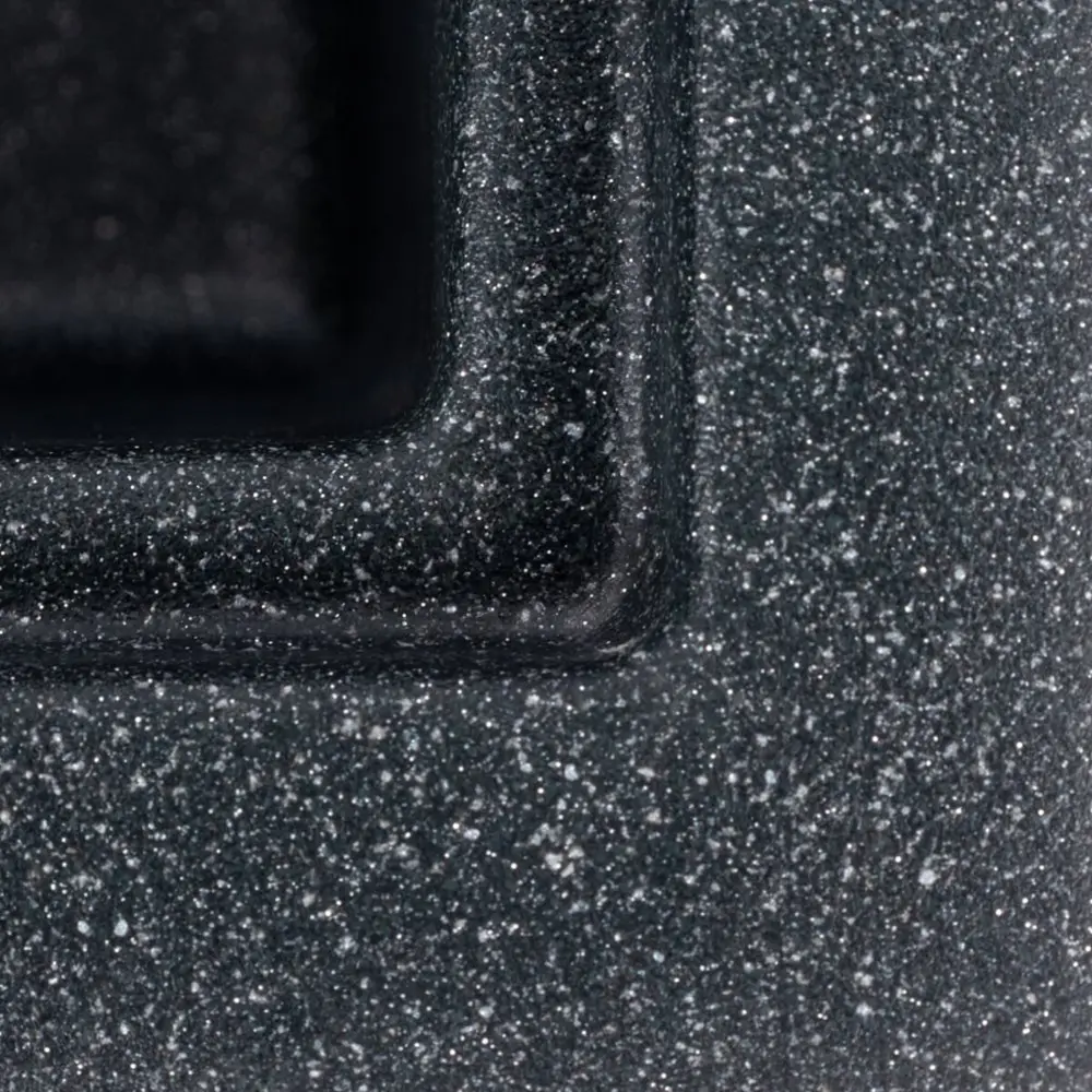 Модель 6050 SHERLIT має елегантний та стриманий дизайн з матовою текстурою, що підкреслює її сучасний стиль. Глибокий колір антрацит (темно-сірий, майже чорний) додає вишуканості та легко поєднується з різними кухонними гарнітурами та стільницями. Високоякісний граніт забезпечує виняткову стійкість мийки до подряпин, ударів, високих температур (до +280°C) та агресивних хімічних речовин, що гарантує її довговічність та гігієнічність.