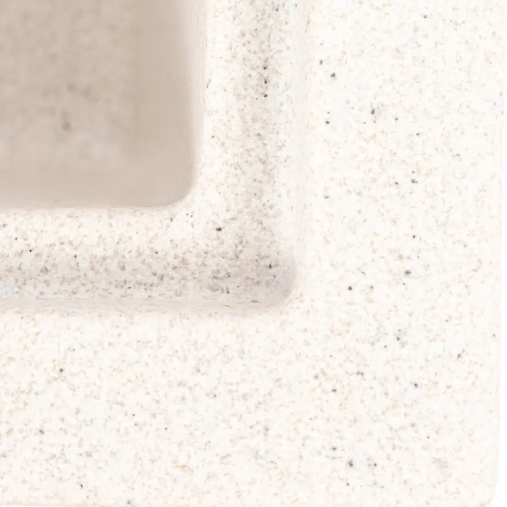 Модель 6050 SHERLIT має елегантний та стриманий дизайн з матовою текстурою. Колір біла в крапку - це світлий, яскравий відтінок білого, доповнений дрібними, ледь помітними вкрапленнями, що імітують природну структуру каменю та додають глибини та цікавого візуального ефекту. Цей візерунок робить мийку менш маркою, ніж чисто біла, при цьому зберігаючи її світлий вигляд. Високоякісний граніт забезпечує виняткову стійкість мийки до подряпин, ударів, високих температур (до +280°C) та агресивних хімічних речовин, що гарантує її довговічність та гігієнічність.