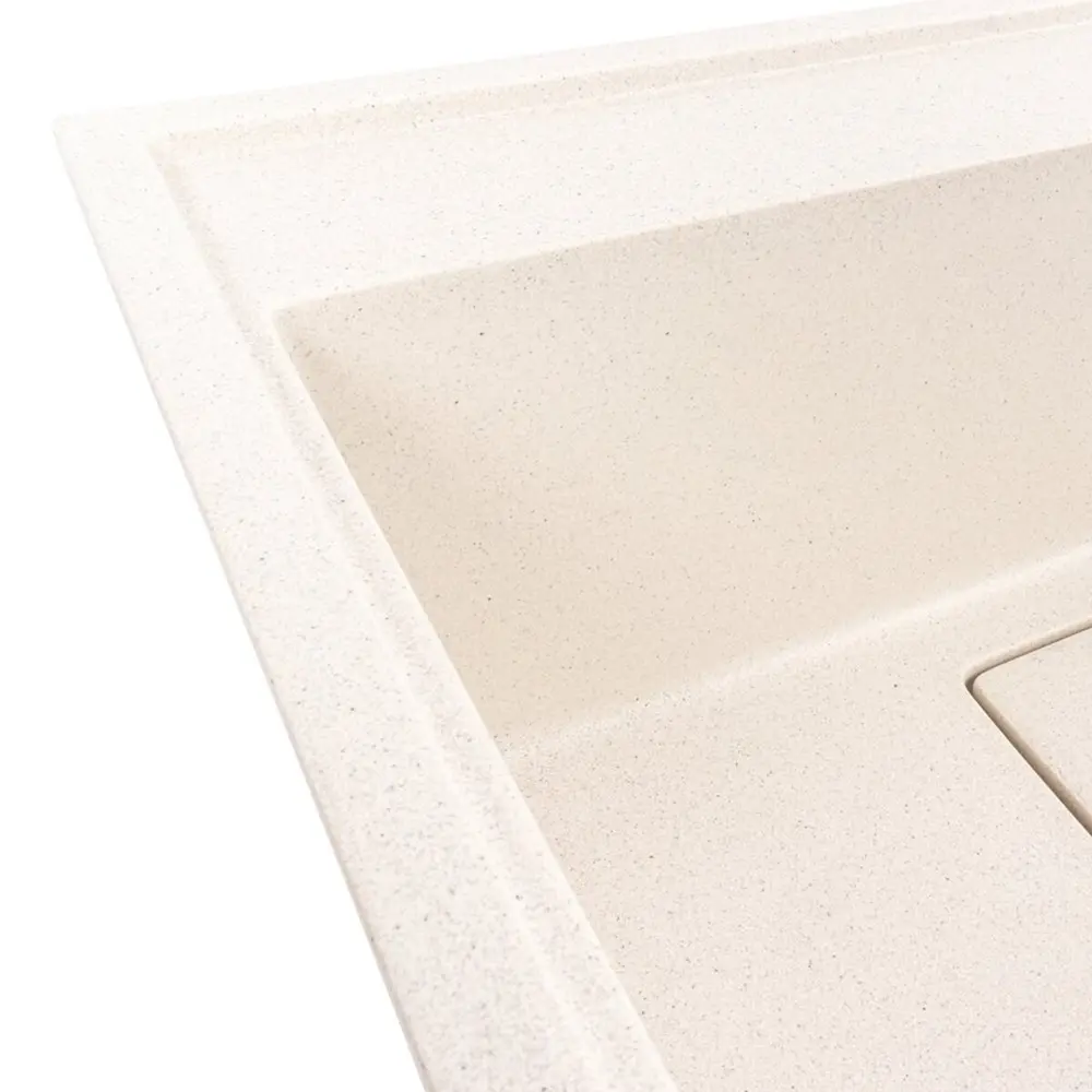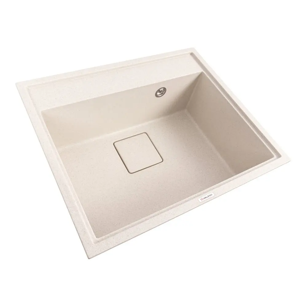 Гранітна кухонна мийка VALESO 6050 SHERLIT у кольорі біла в крапку — це сучасне та довговічне рішення, яке додасть світла, свіжості та унікальності вашій кухні. Її матова поверхня та оригінальний візерунок створять неповторну атмосферу, а високоякісний граніт забезпечить довговічність та легкість у догляді. Ця модель з однією основною чашею без сушки є практичним вибором для щоденного використання.