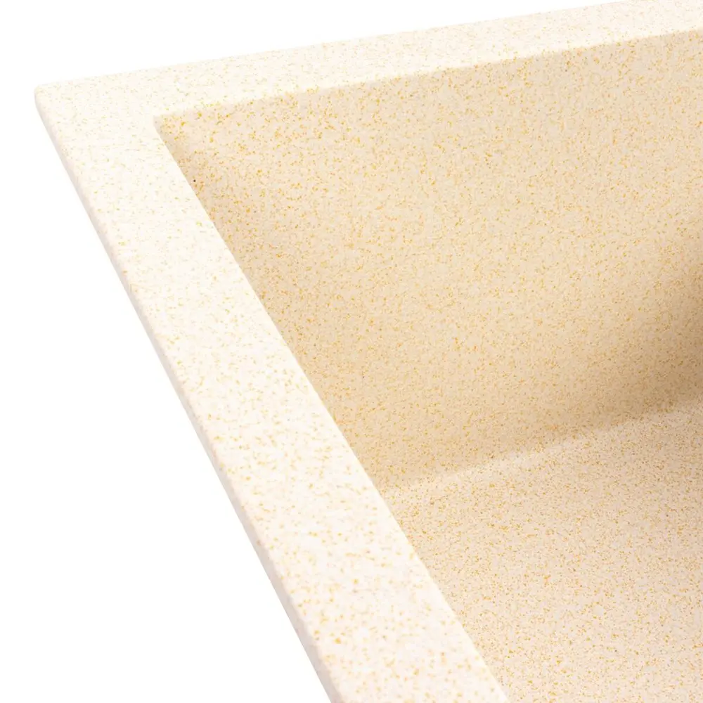 Модель 6550 CRIPTA має сучасний та мінімалістичний дизайн з матовою текстурою, що надає їй вишуканого вигляду. Колір пісок — це світлий, теплий, приємний для ока відтінок, що нагадує натуральний пісок або світлу деревину. Він чудово гармонує з різними стилями кухонних інтер'єрів, створюючи затишну та світлу атмосферу. Високоякісний штучний камінь забезпечує виняткову стійкість мийки до подряпин, ударів та агресивних хімічних речовин, що гарантує її довговічність та гігієнічність.