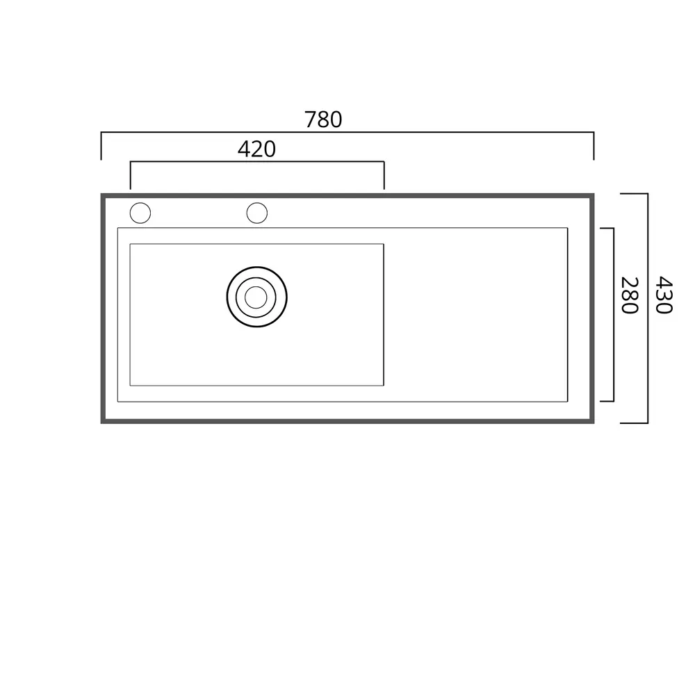 З розмірами 780х430х210 мм та розміром чаші 420х280х210 мм, ця мийка ідеально підходить для будь-якої кухні, забезпечуючи достатньо місця для миття та підготовки їжі.