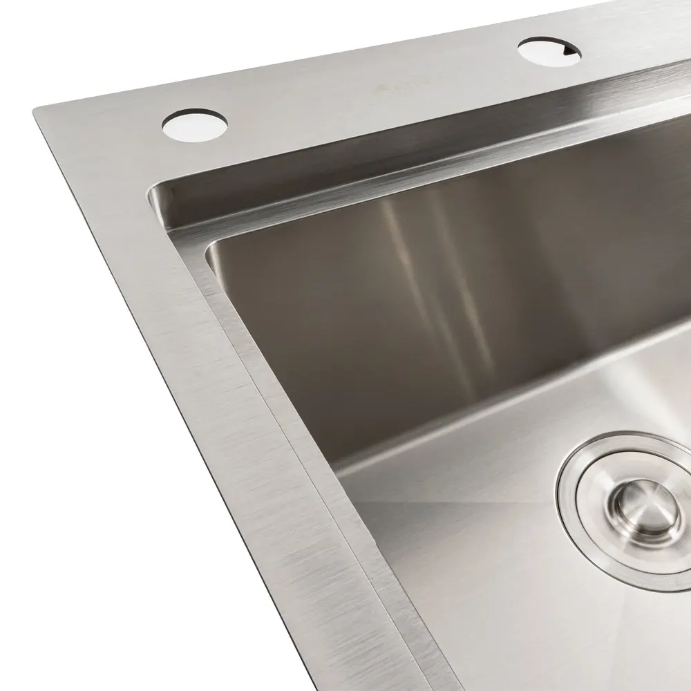 Кухонна мийка обладнана двома отворами під змішувач та дозатор, що робить процес приготування їжі ще більш зручним та функціональним. Круглий сифон, який йде в комплекті, забезпечує ефективне відведення води, підтримуючи чистоту та гігієну в вашій кухні.