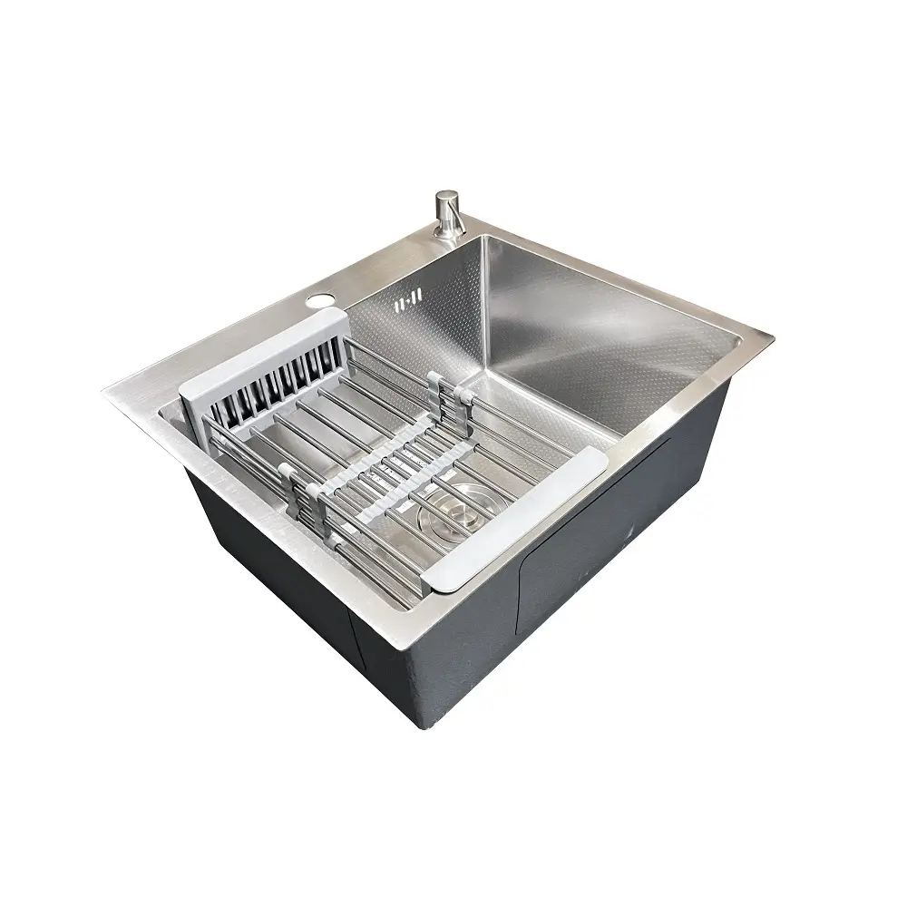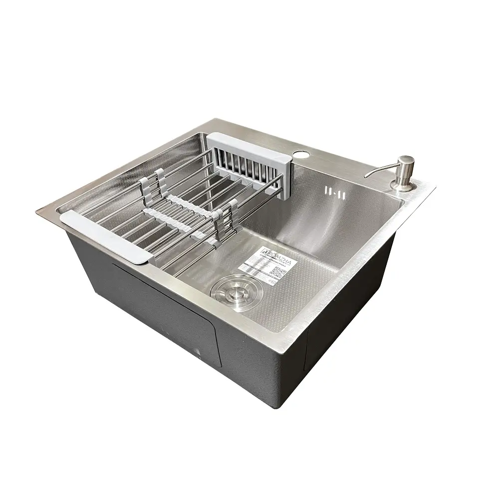 Комплектація: кухонна мийка, сифон, армованний гофро-шланг, корзина з нержавіючої сталі та дозатор