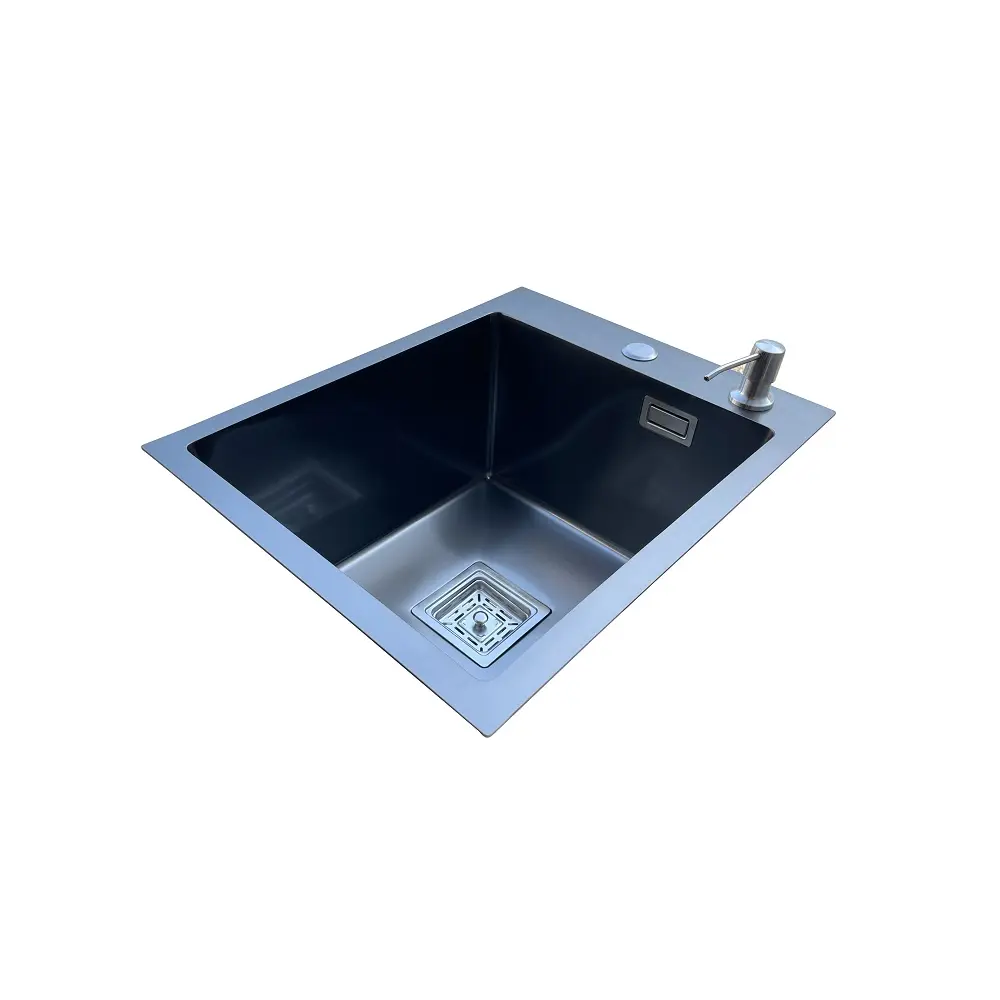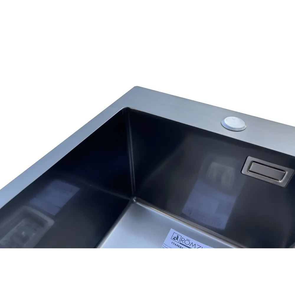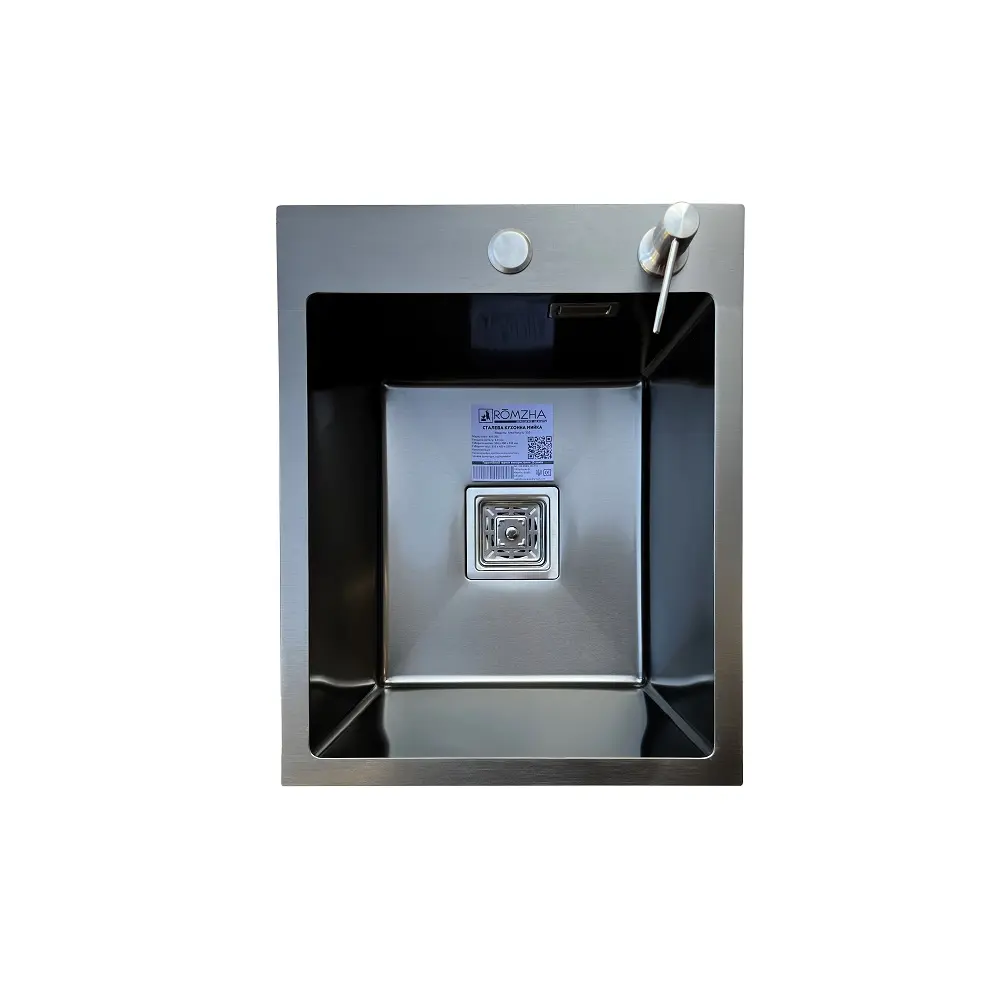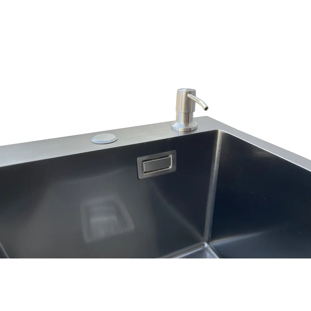 Комплектація: кухонна мийка, сифон, армованний гофро-шланг, корзина з нержавіючої сталі та дозатор для рідкого миючого засобу