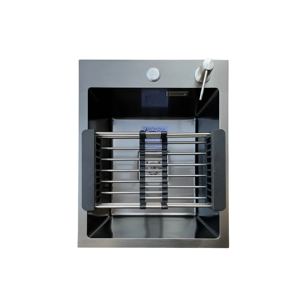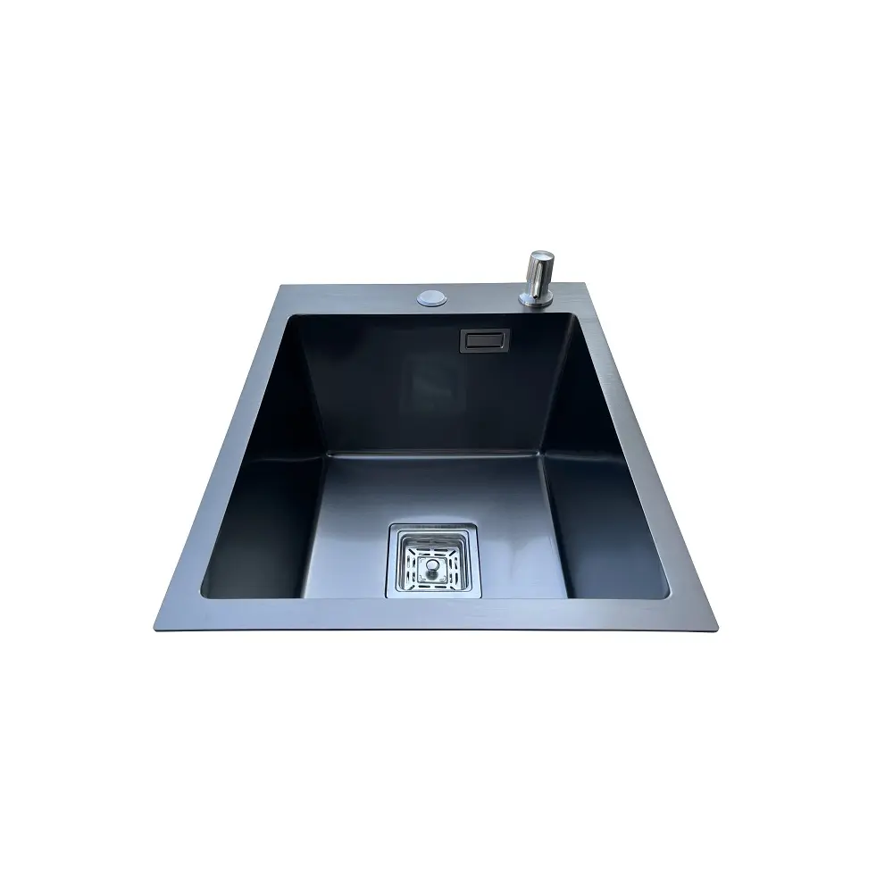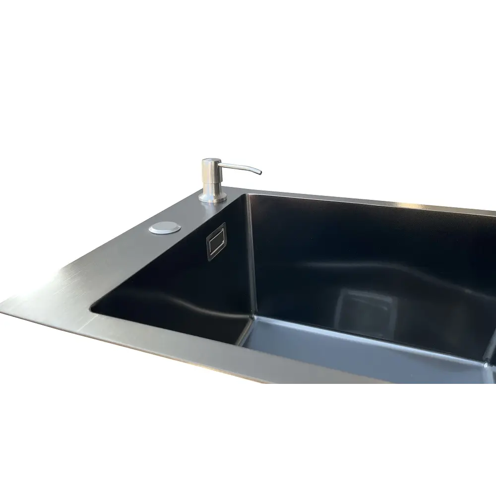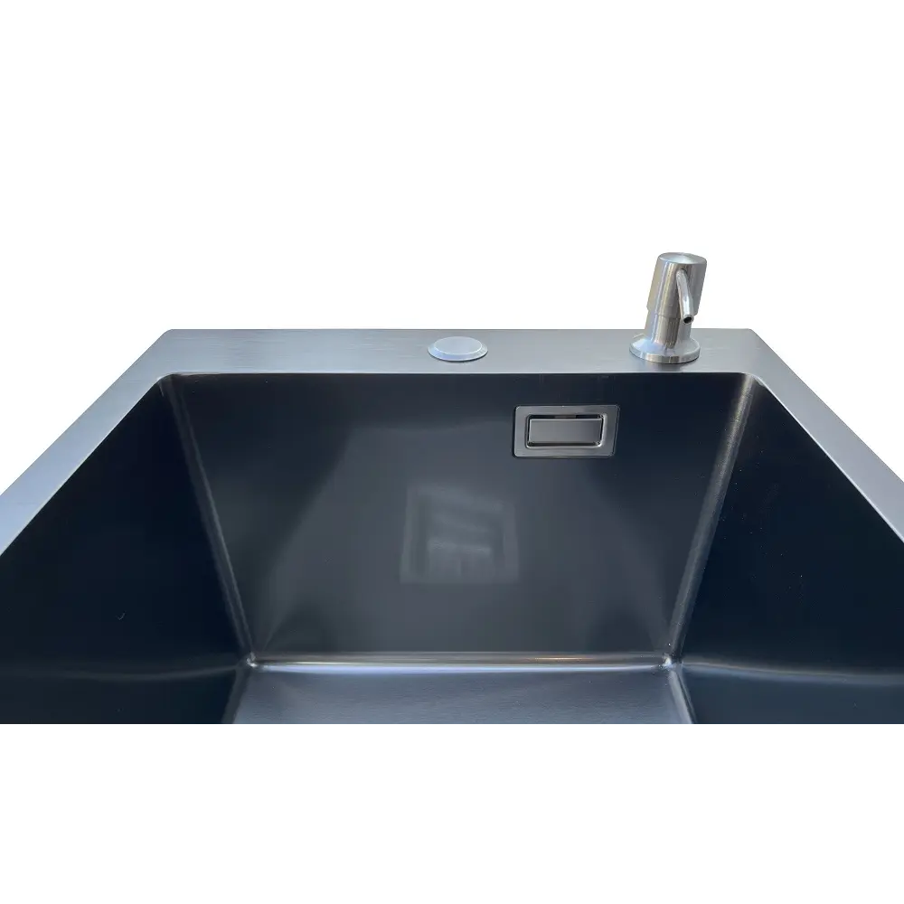 Комплектація: кухонна мийка, сифон, армованний гофро-шланг, корзина з нержавіючої сталі та дозатор для рідкого миючого засобу