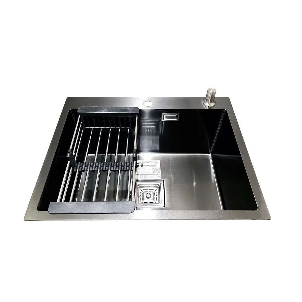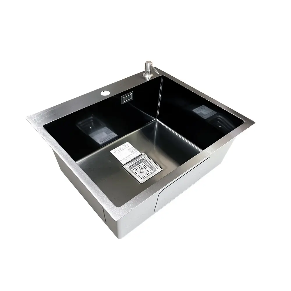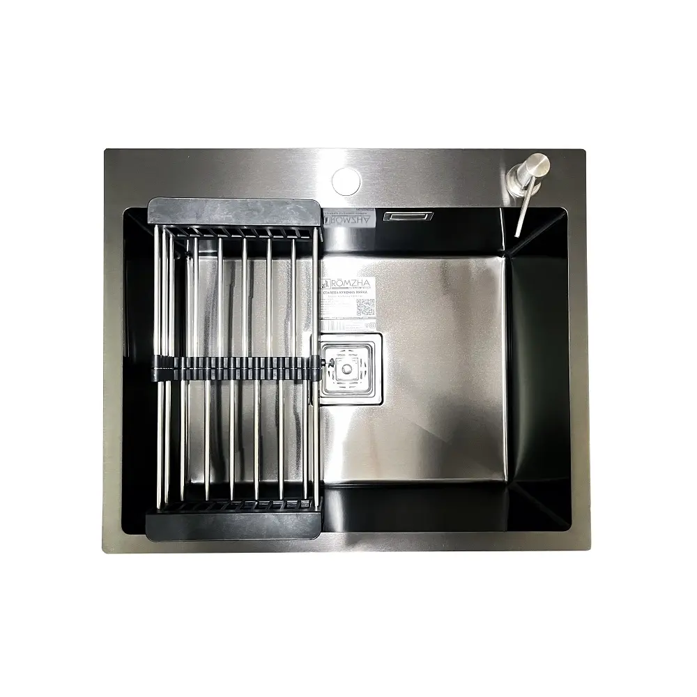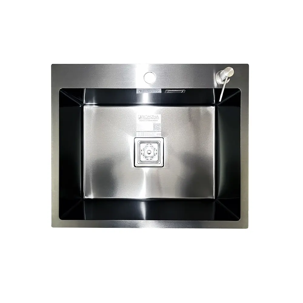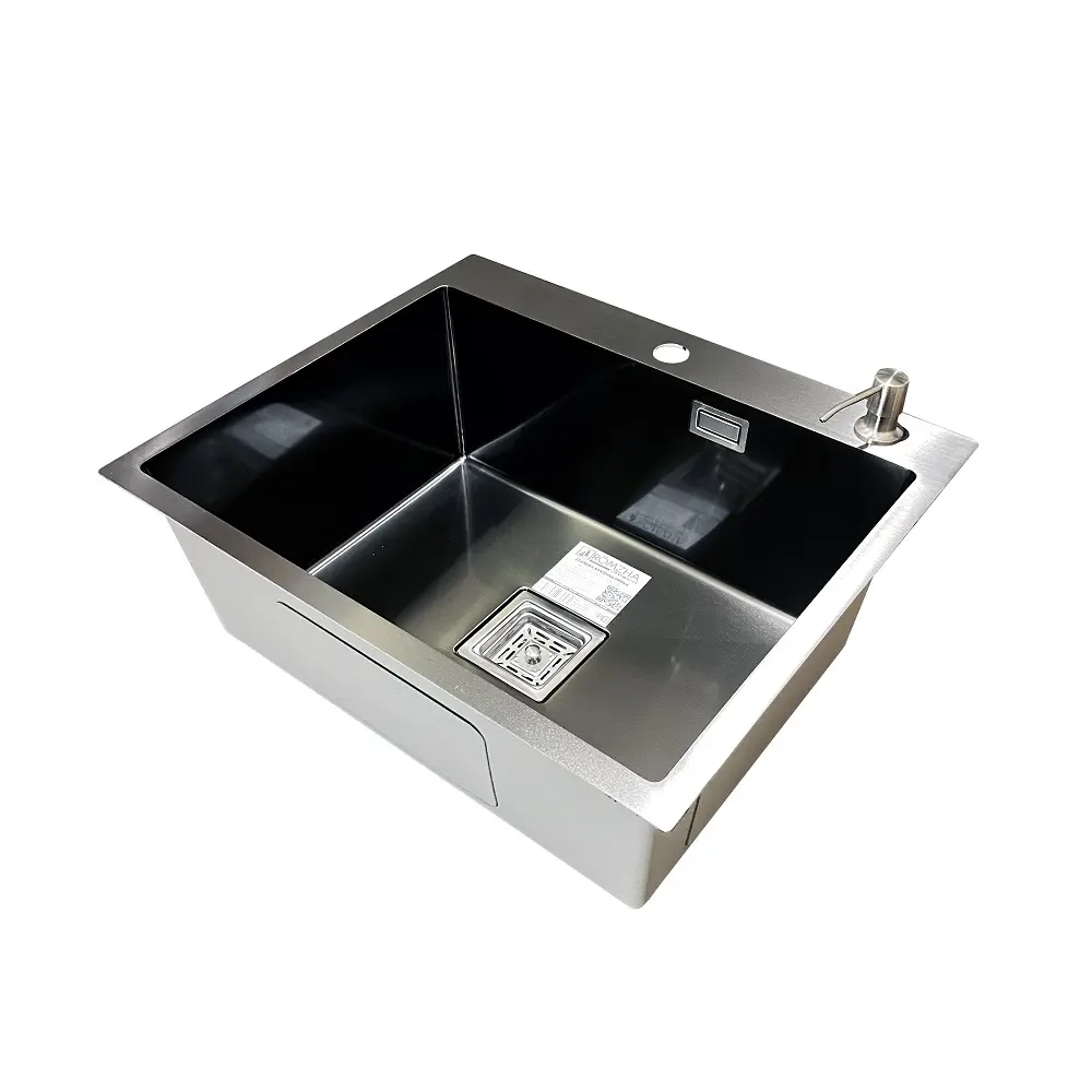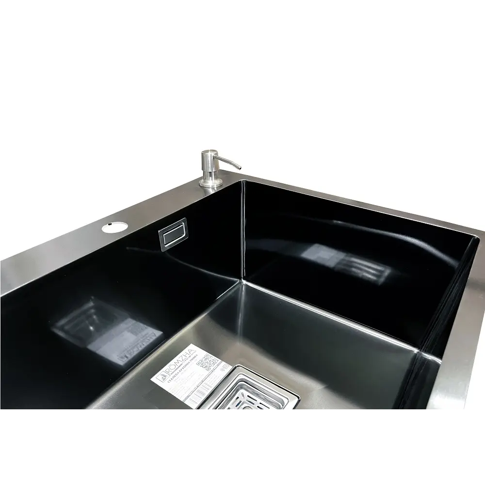 Комплектація: кухонна мийка, сифон, армованний гофро-шланг, корзина з нержавіючої сталі та дозатор для рідкого миючого засобу