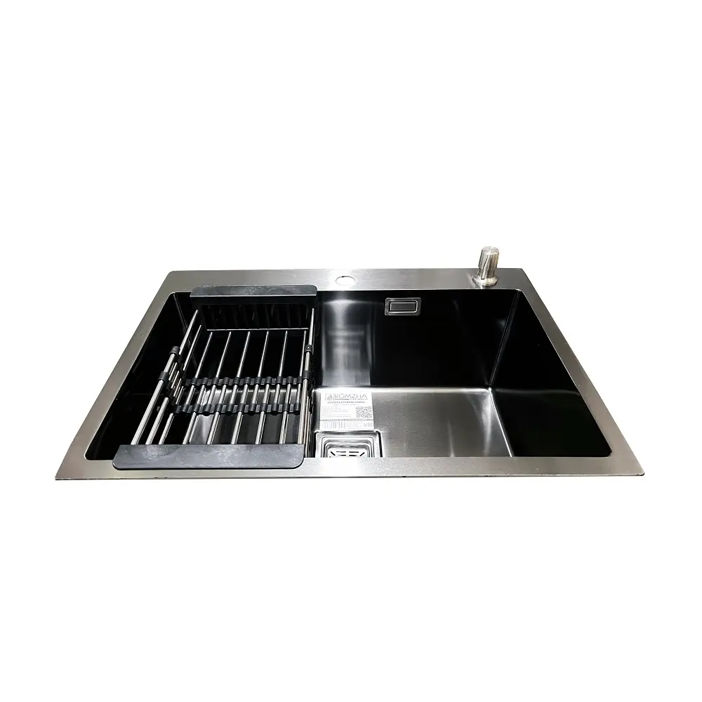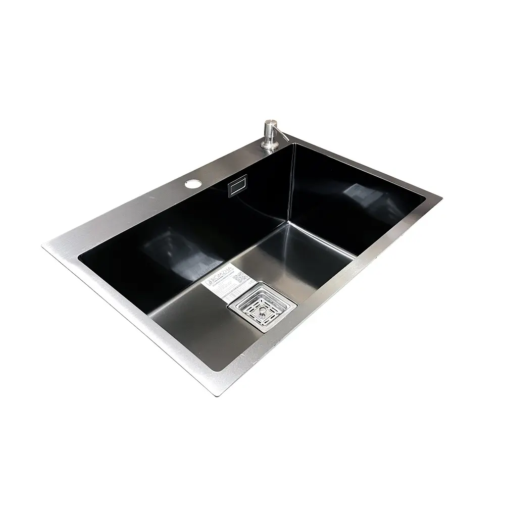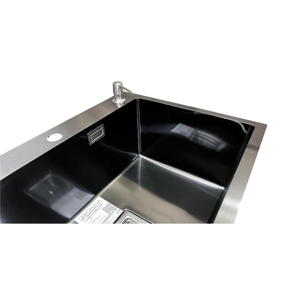 Комплектація: кухонна мийка, сифон, армованний гофро-шланг, корзина з нержавіючої сталі та дозатор для рідкого миючого засобу