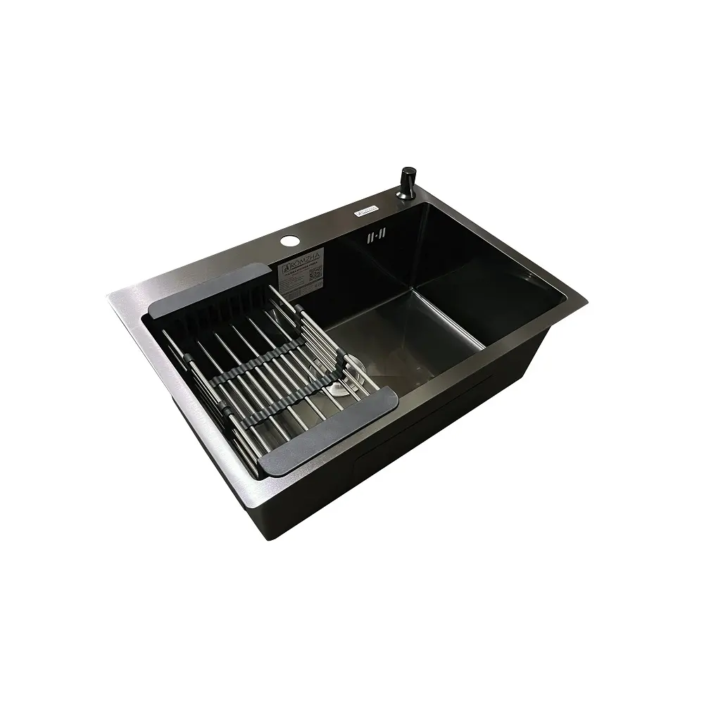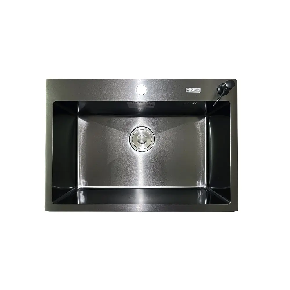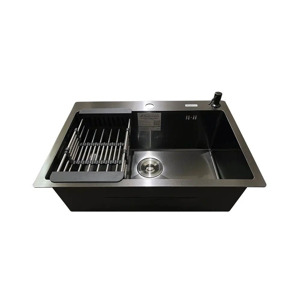 Комплектація: кухонна мийка, сифон, армованний гофро-шланг, корзина з нержавіючої сталі та дозатор для рідкого миючого засобу
