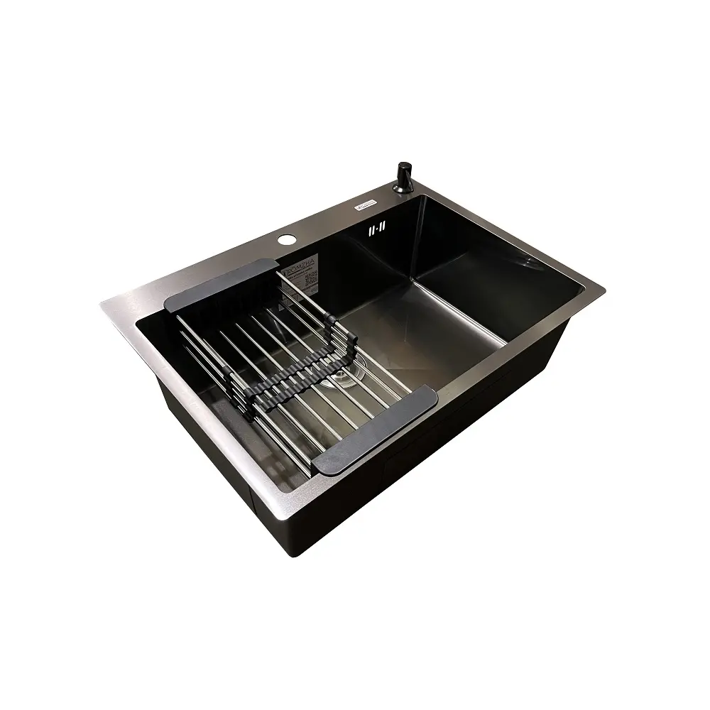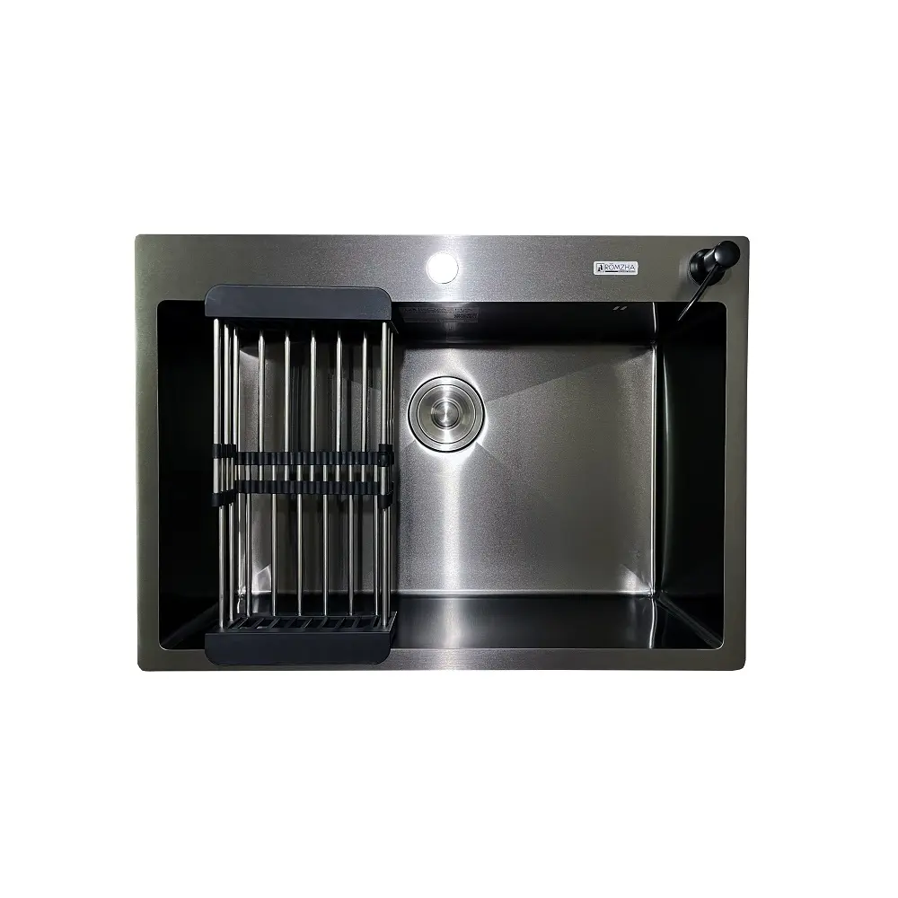 Комплектація: кухонна мийка, сифон, армованний гофро-шланг, корзина з нержавіючої сталі та дозатор для рідкого миючого засобу