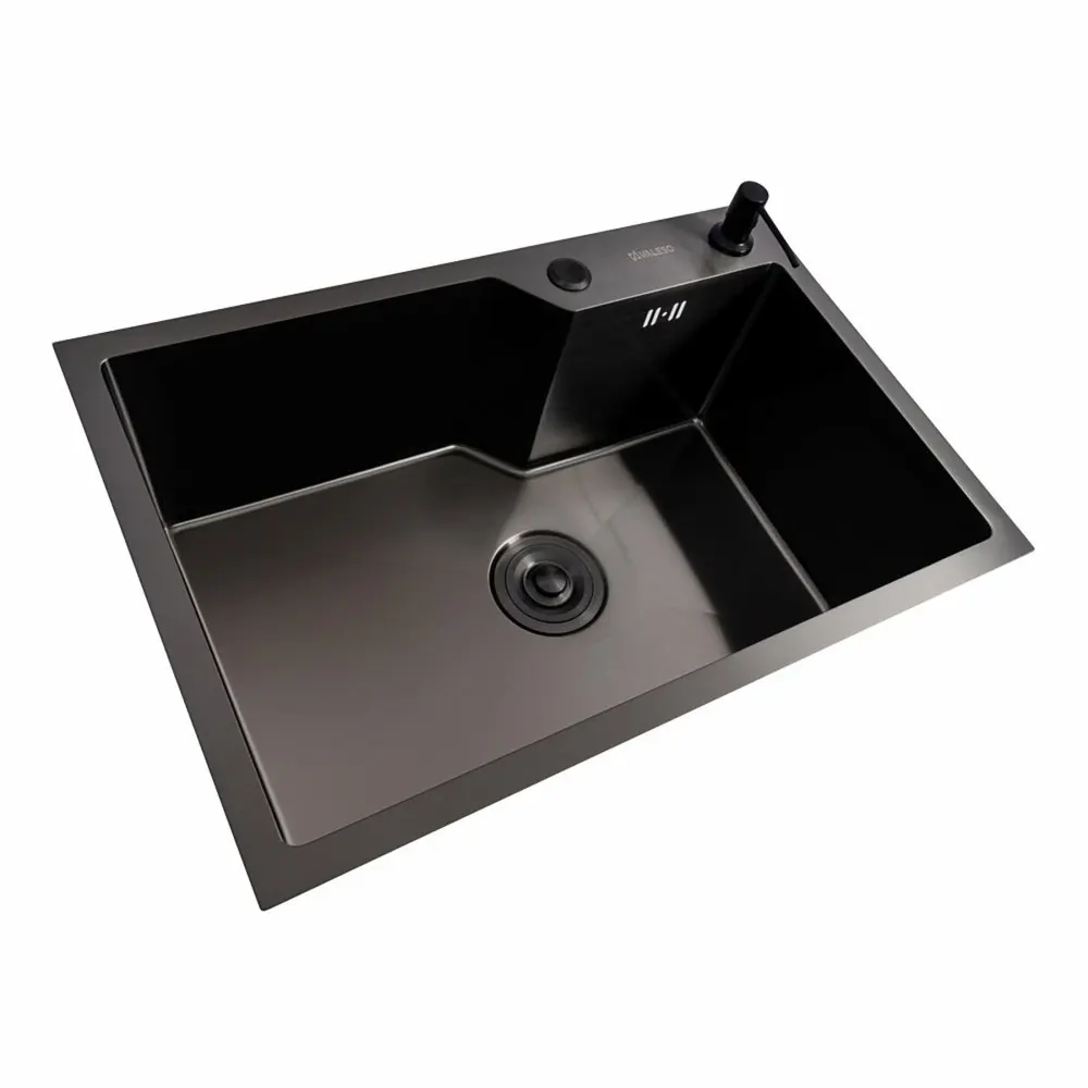 Кухонна мийка VALESO Handmade 65х43 PVD (3,0/0,8) чорна відмінне стильне рішення для кухні невеликих та середніх розмірів. Лаконічний дизайн прямокутної форми добре пасує різним інтер’єрам кухні.