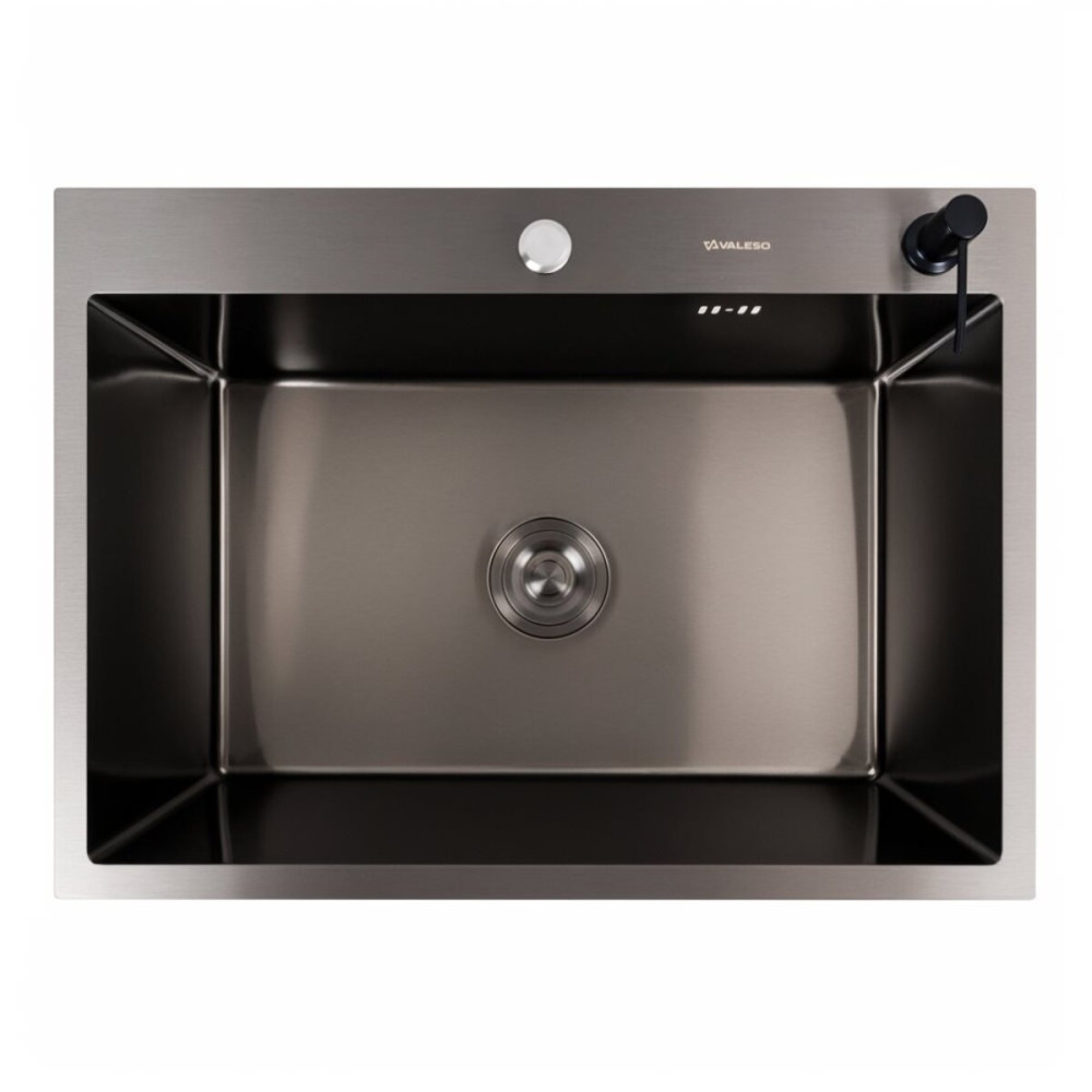 Кухонна мийка 70*50 Мийка PVD чорна VALESO Handmade (сифон круглий, 3,0/0,8) це відмінне стильне рішення для кухні середніх розмірів. Лаконічний дизайн прямокутної форми добре пасує різним інтер’єрам кухні.