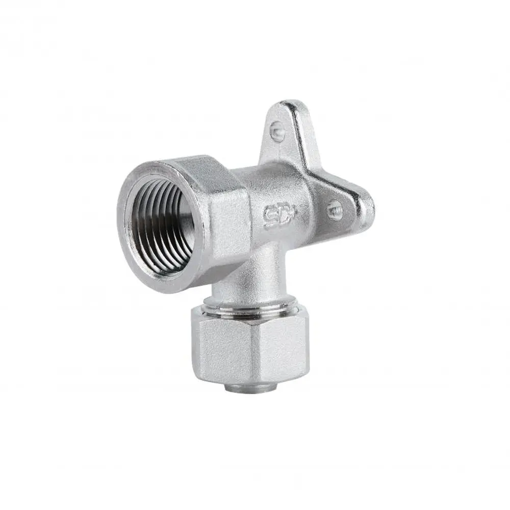 Кут обтискний SD Plus настінний 16х1/2" ВР SD162W1615 є фітингом для монтажу металопластикової труби та має розмір приєднання 16х1/2". Матеріал виготовлення фітинга - латунь, виріб має нікельоване покриття.
