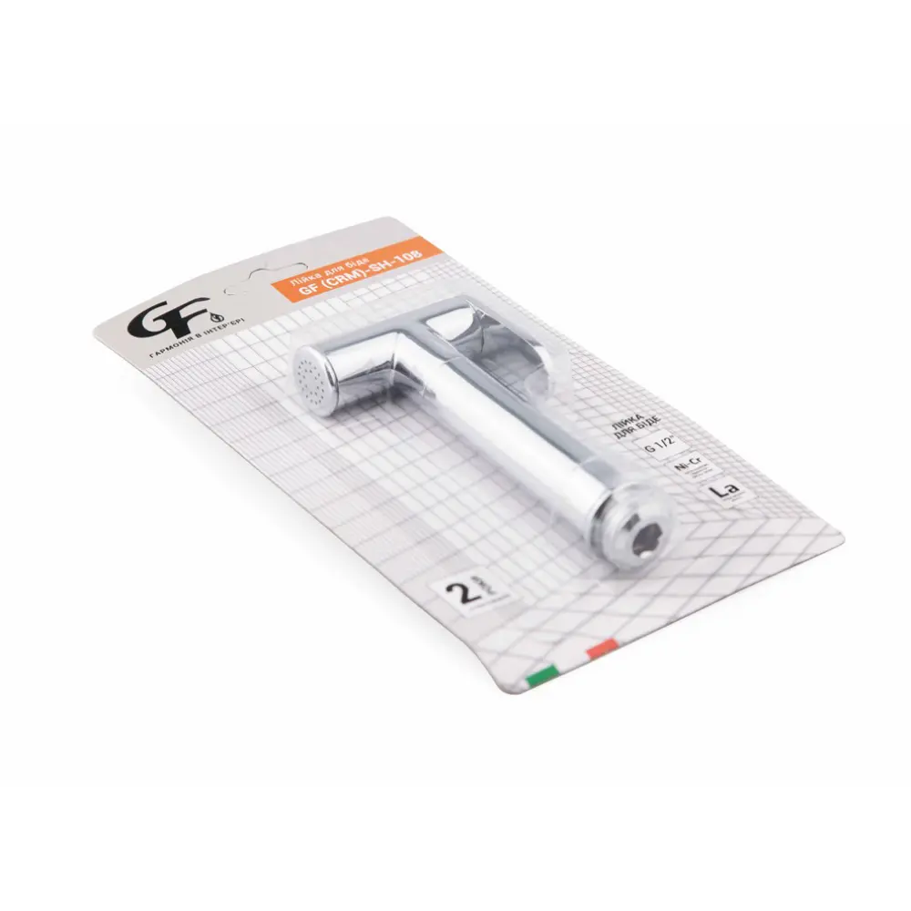 Лейка для гигиенического душа GF (CRM) -SH-108 выполнена из латуни, поэтому прослужит долгие годы и предотвратит появление коррозии. На ручку нанесено фирменный логотип производителя. Лейка монтируется без особых усилий и дополнительных подручных средств. Она компактная, не отнимет много места, поэтому подойдет даже маленьким помещением. Подача воды происходит только при нажатии на клапан.
