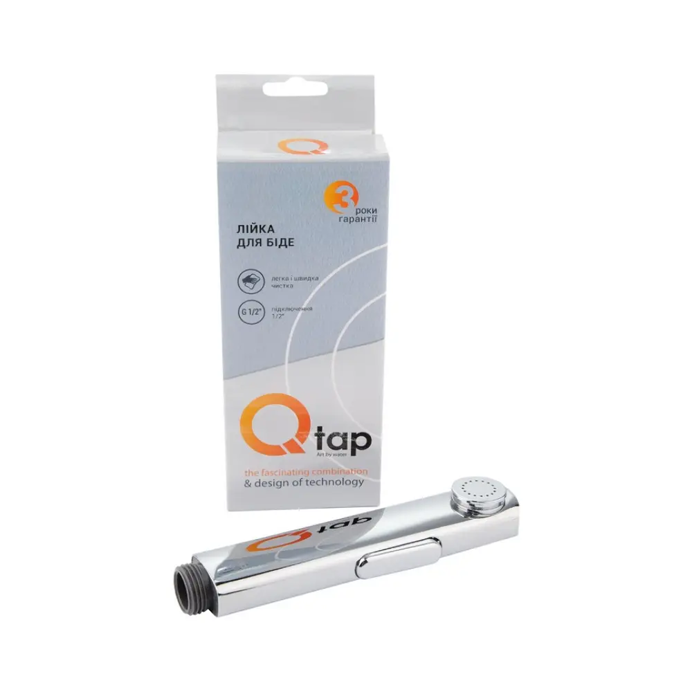 Лійка для гігієнічного душу Qtap CRM A120 виконана з латуні з хромованою поверхнею, яка завжди виглядає стильно й захистить виріб від утворення корозії. Її встановлюють біля унітазу або раковини, що спрощує проведення гігієнічних процедур, а також догляд за тваринами. Завдяки універсальному діаметру лійка сумісна з усіма гнучкими шлангами для душу. У виробі передбачено один тип струменя, який вмикається тільки при натисканні та утриманні кнопки на бічній панелі.