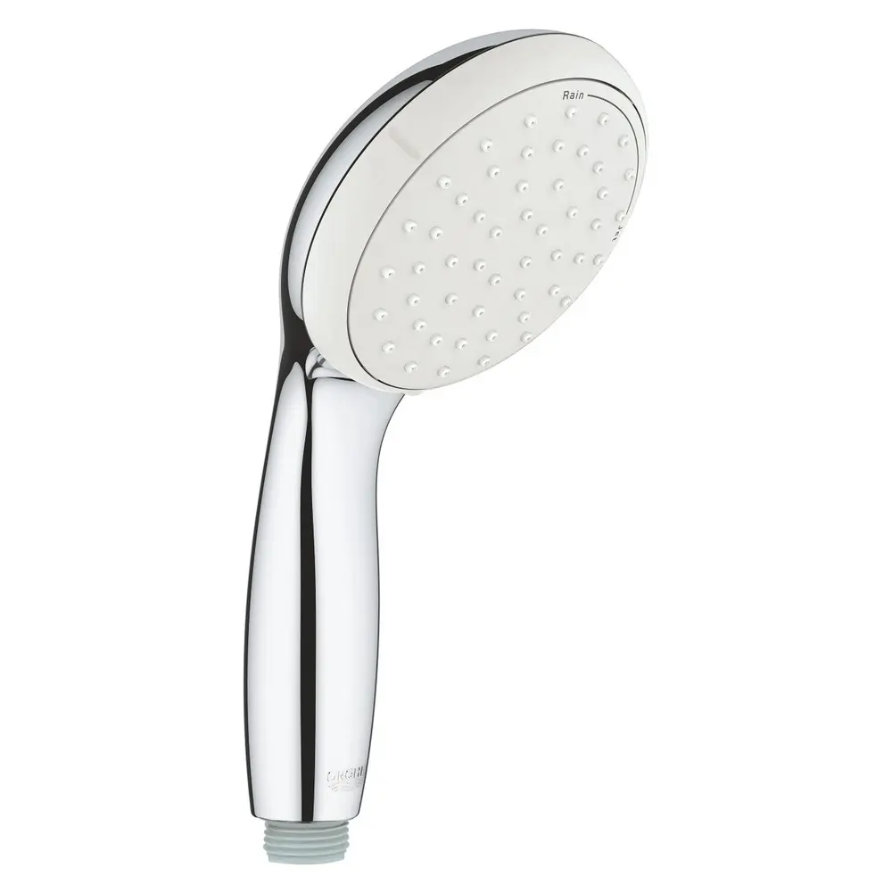 Лейка для ручного душа Grohe New Tempesta 100 26161001 выполнена из белого пластика с хромированным корпусом, который устойчив к коррозии и износу. На изделие нанесена фирменный логотип производителя. Лейка монтируется без особых усилий и дополнительных подручных средств. В ней предусмотрено два типа струи: Rain и Jet. Универсальная система установки подходит к любому стандартному душевого шланга.