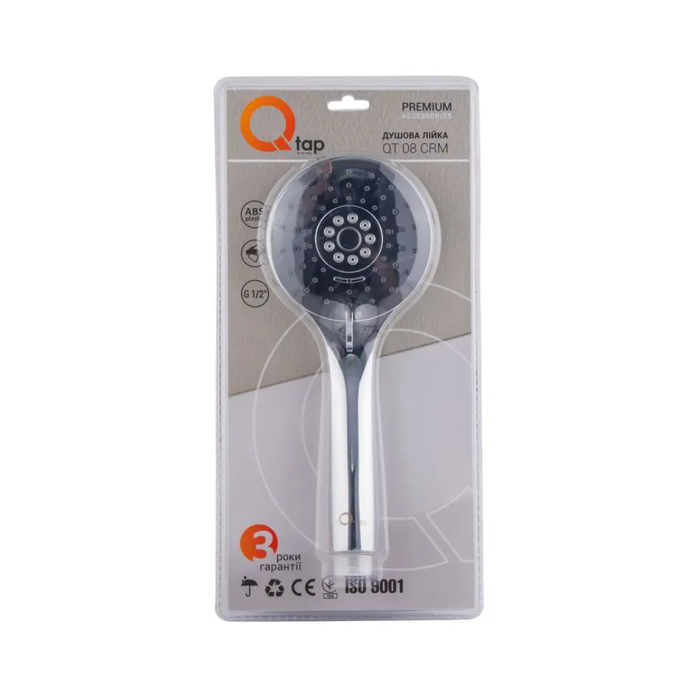 Лійка для ручного душу Qtap 08 виконана з пластику з хромованим покриттям, тому поверхня блискуча, не іржавіє, не боїться гідроударів й перепаду температур, а також не облазить від агресивних миючих засобів. Для підключення до душового шланга є підвід з зовнішньою різьбою. Завдяки універсальному діаметру лійка сумісна з усіма гнучкими шлангами для душу. Монтується без особливих зусиль та додаткових підручних засобів.