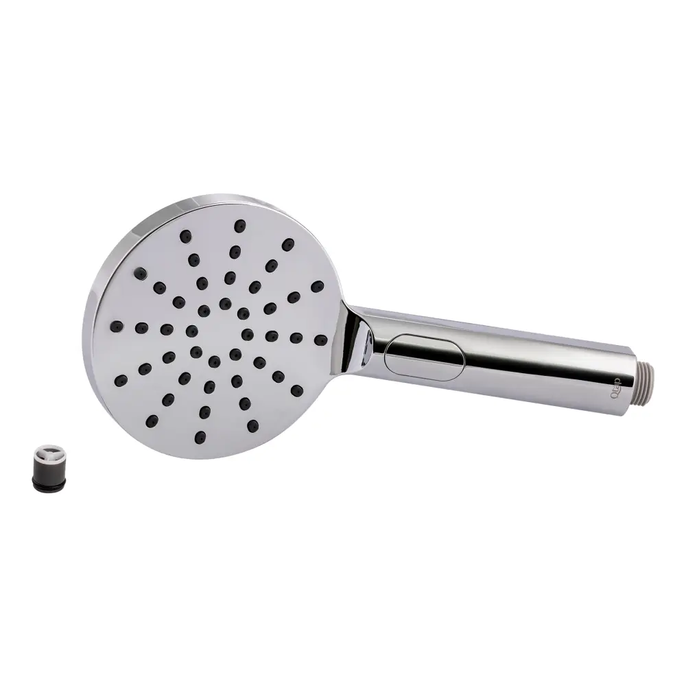 Лійка для ручного душу Qtap Rucni A121O3PCC виготовлена з міцного пластику з хромованим покриттям, що не боїться гідроударів і перепаду температур, а також не псується від агресивних миючих засобів. Для підключення до душового шлангу є підведення з зовнішнім різбленням. Завдяки універсальному діаметру лійка сумісна з усіма шлангами для душу. У виробі передбачено 3 типи струменя.
