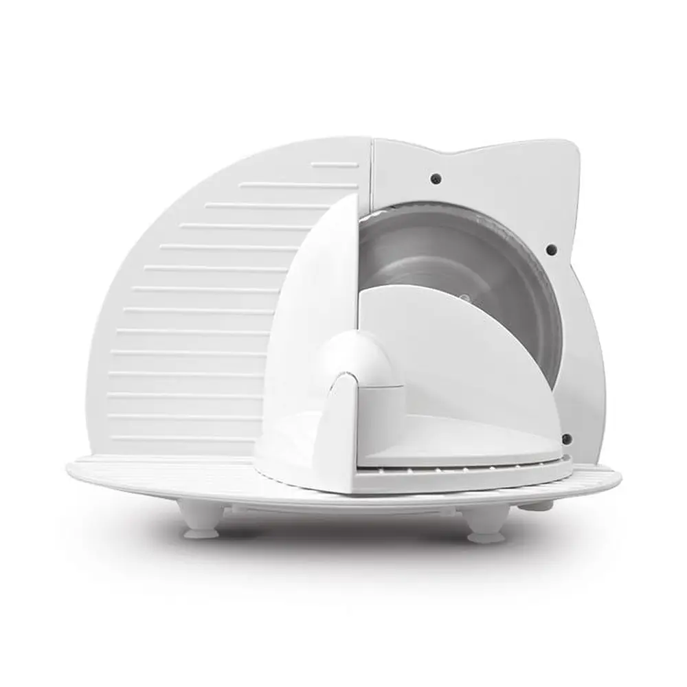 Корпус Ломтерізки виготовлений з міцного і безпечного для здоров'я пластика, який дозволений для контакту з їжею, і не містить шкідливих сполук, включаючи Бісфенол А. Удосконалений двигун, захисні функції і система блокування при неправильному використанні, гарантують безпеку і надійність роботи пристрою. p>