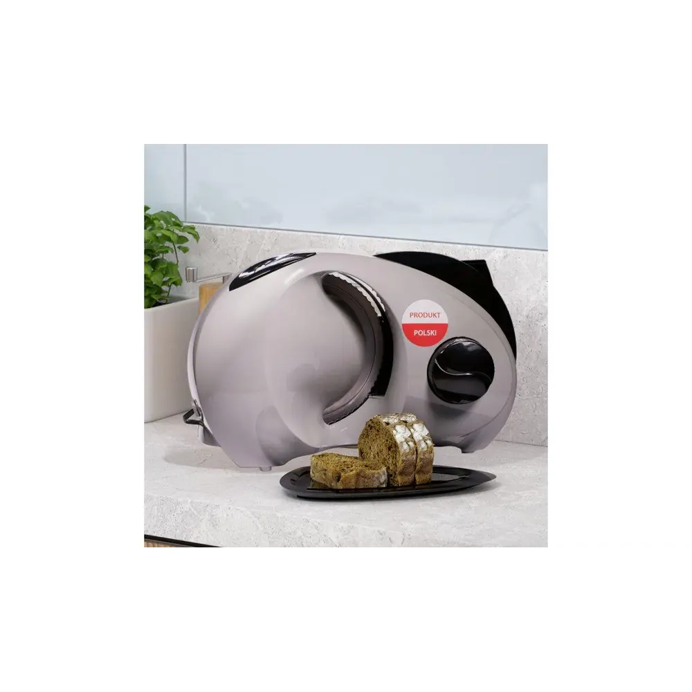 Ніж хвилеподібної форми,Плавний регулятор товщини нарізки,Прогумовані ніжки,Піднос для нарізаних продуктів