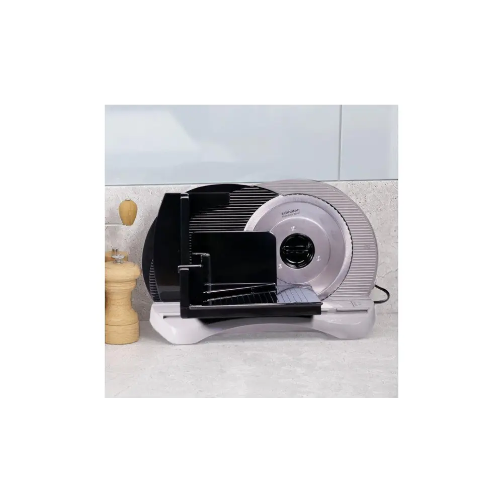 Слайсер ZELMOTOR 294.5 виготовлений з матеріалів високої якості. Ніж з високоякісного пластику і нержавіючої сталі. Він має ергономічний перемикач і плавне регулювання товщини різки. Пристрій також дуже безпечний у використанні, він має захист від випадкового зісковзування з корпусу і захист пальців. У слайсера також прогумовані ніжки проти для стійкої роботи. Ломтікорезку дуже легко утримувати в чистоті. P>