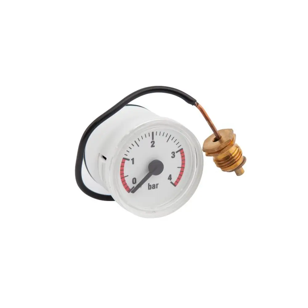 Манометр 7021170015 служить для індикації тиску води у системі опалення. Робочий тиск у системі опалення має бути в межах 1 – 1,5 бар. Мінімальний тиск, при якому котел запускається 0,5 бар.