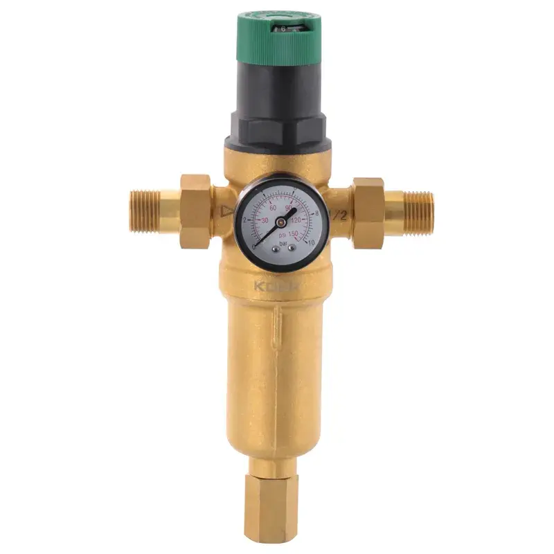Компактний, зручний у монтажі та обслуговуванні фільтр. KOER приємно здивував якістю збірки: латунь масивна, різьби точні, нічого не підтікає. Манометр працює точно, редуктор чітко тримає тиск. Для квартири або приватного будинку — дуже вдалий варіант.