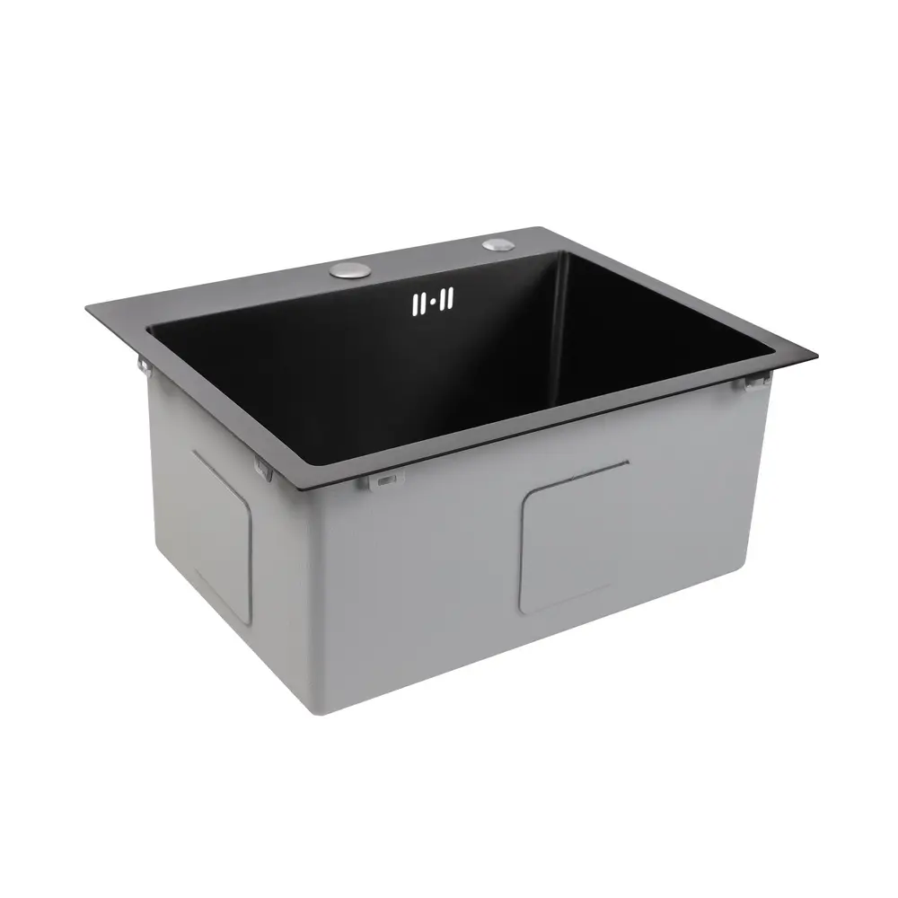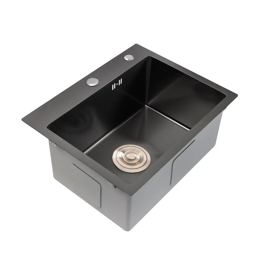 Кухонна мийка Platinum Handmade 50*45 (500x450x220 мм) PVD чорна це відмінне стильне рішення для кухні невеликих та середніх розмірів. Лаконічний дизайн прямокутної форми добре пасує різним інтер’єрам кухні.