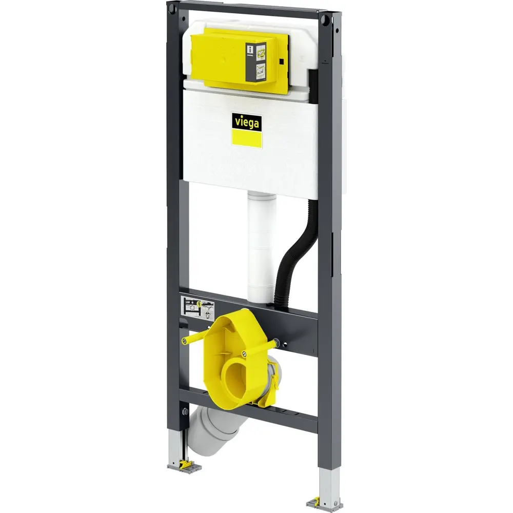 - рама (30х30) з порошковим напиленням, бачок прихованого монтажу 3H, приєднувальний комплект для унітазу, кріплення, висувні фіксуються опори для регулювання висоти, підключення води R½ з заднього боку, регульоване по глибині сполучна коліно для унітаза DN90 з PP, ексцентриковий перехідник DN90 / 100 з РР