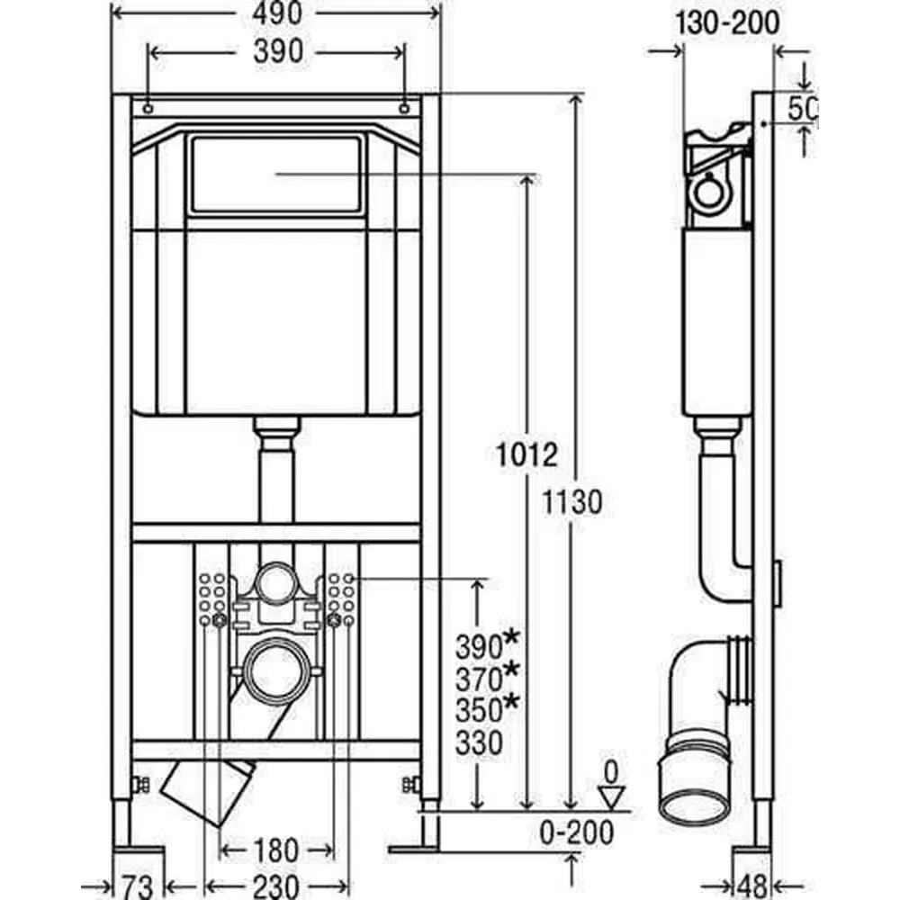 фронтальная установка кнопки смыва (кнопки смыва и комплектующие в комплект не входят)