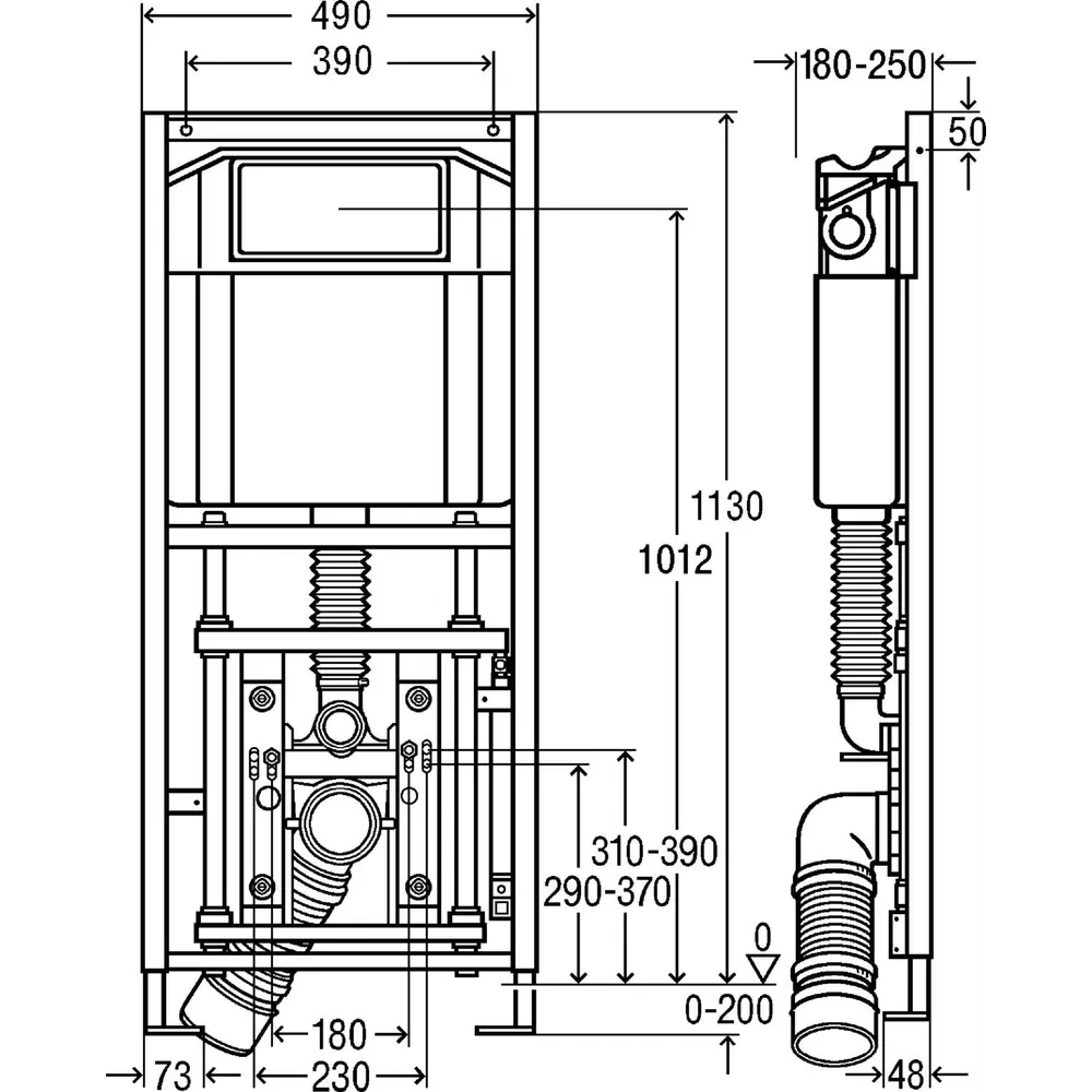 Розміри модуль-бачок для унітаза Eco Plus із регулюванням по высоті 1130х490 Viega 708764+708962 (див. мал.)