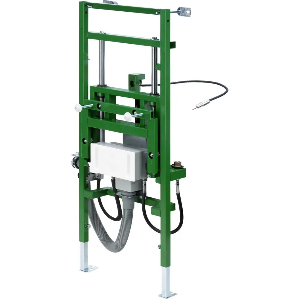 сталева рама з порошковим напиленням, пневматична пружина, гнучка підводка, приєднувальний блок прихованого монтажу з регульованим по висоті сифоном, гумовий ніпель DN40 / 30, 2 пристінних введення, 2 кутових вентиля G½-G⅜, розетка прихованого монтажу для кріплення кнопки індивідуального регулювання висоти кераміки, кріпильний матеріал для елемента і кераміки, саморізи для фіксації на металевих каркасних конструкціях, отвір Ø 11 мм для кріплення на деревяному каркасі, висувні опори