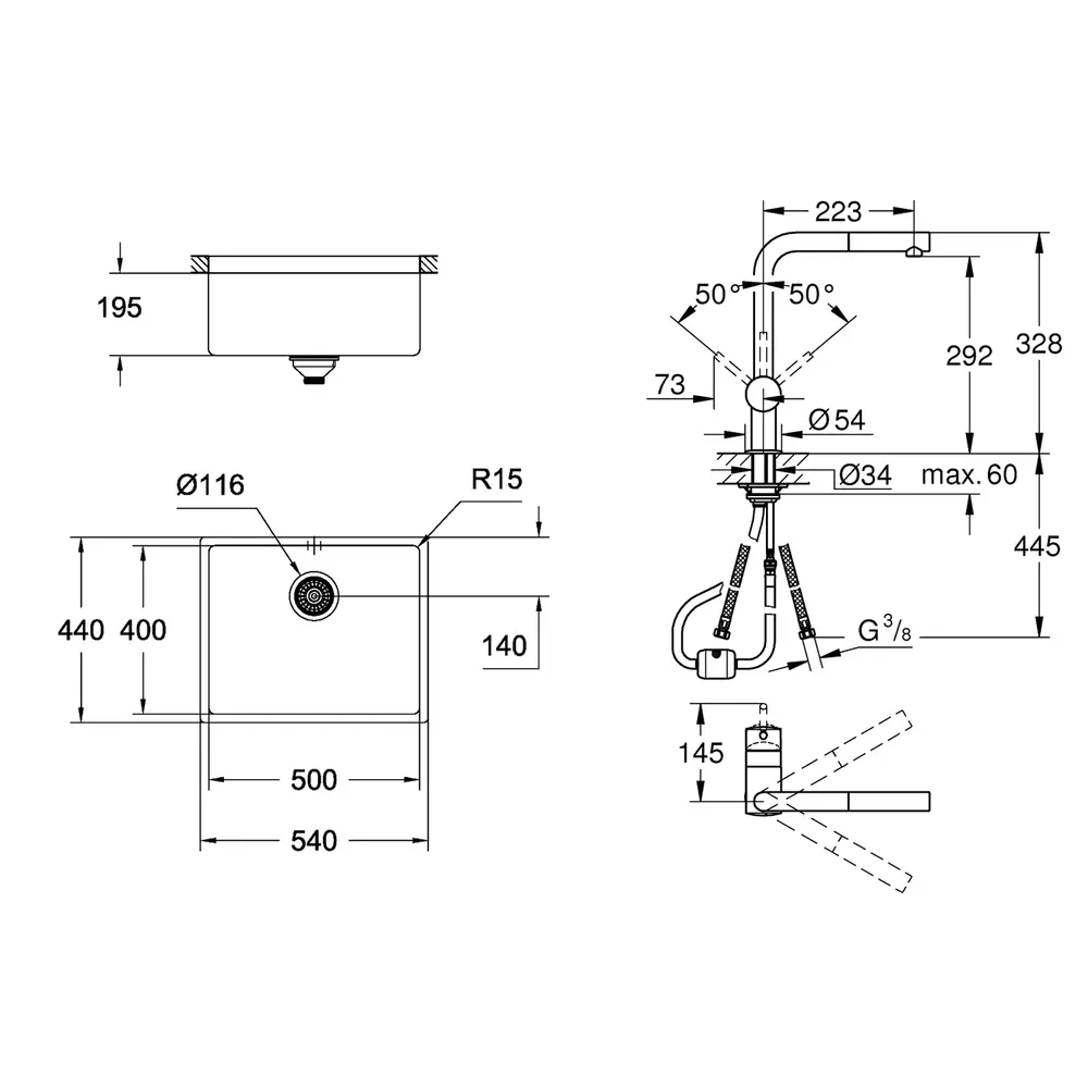 Мийка: Grohe K700 31574AL0. Змішувач: Grohe Minta 32168000