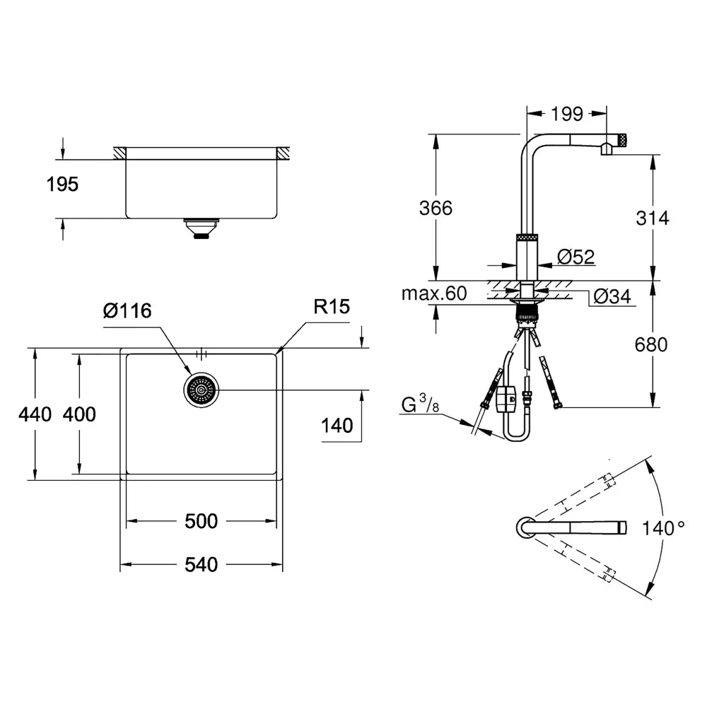 Набір Grohe мийка кухонна K700 31574DL0 + змішувач Minta Smartcontrol 31613DA0 стане незамінним атрибутом будь-якої сучасної кухні. Стійкість до пошкоджень і засобів для чищення, а також довговічність мийки є результатом використання якісної нержавіючої сталі товщиною 1 мм. Зручний змішувач з високим висувним виливом і кутом повороту на 360 °C дозволить розширити функціональність даної кухонної зони.