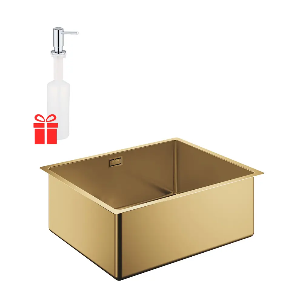 Набір Grohe мийка кухонна K700U 31574GN0 + дозатор для миючого засобу Contemporary 40536000 стане незамінним атрибутом будь-якої сучасної кухні. Стійкість до пошкоджень, чистячих засобів, а також довговічність мийки забезпечується завдяки якісної нержавіючої сталі. Ізоляція GROHE Whisper на нижній частині мийки зменшує шум. Дозатор призначений для зберігання миючого засобу або рідкого мила. Він встановлюється під стільницю або під мийку. Обсяг резервуара - 500 мл.